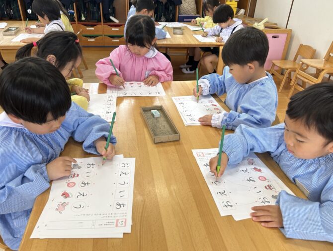外部から講師をお招きし、音楽や体育、茶道、学研まなびタイム、英語、造形、絵画、リトミックなど、さまざまなことを教わります。子どもたちはときには真剣に、そして笑顔でたくさんのことを学んでいます。