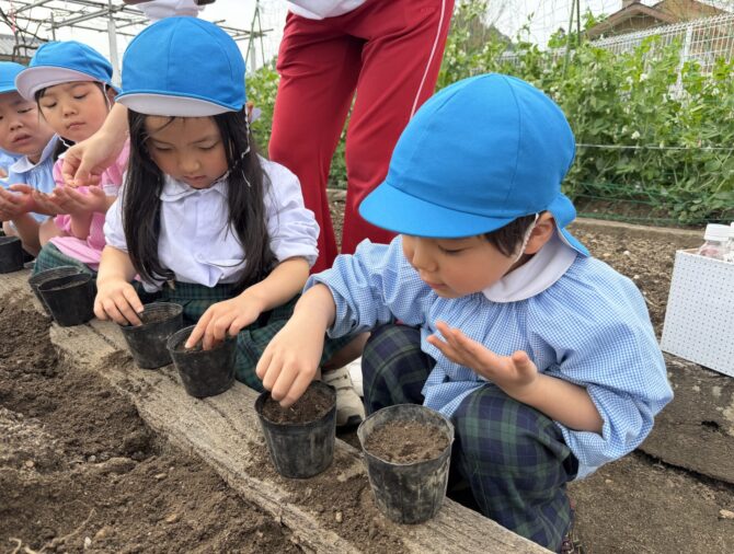 子どもたちが野菜や花の種を蒔き、観察やお世話をし、収穫後にクッキングを行います。また、京都市内だけではなく、滋賀県や大阪府などさまざまな場所へ行き、豊かな体験をします。