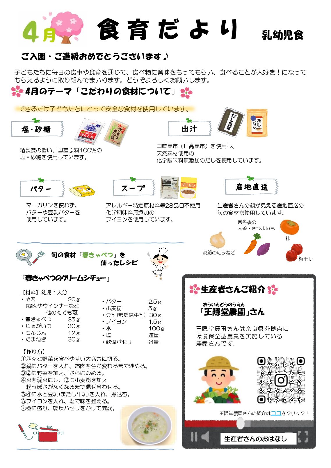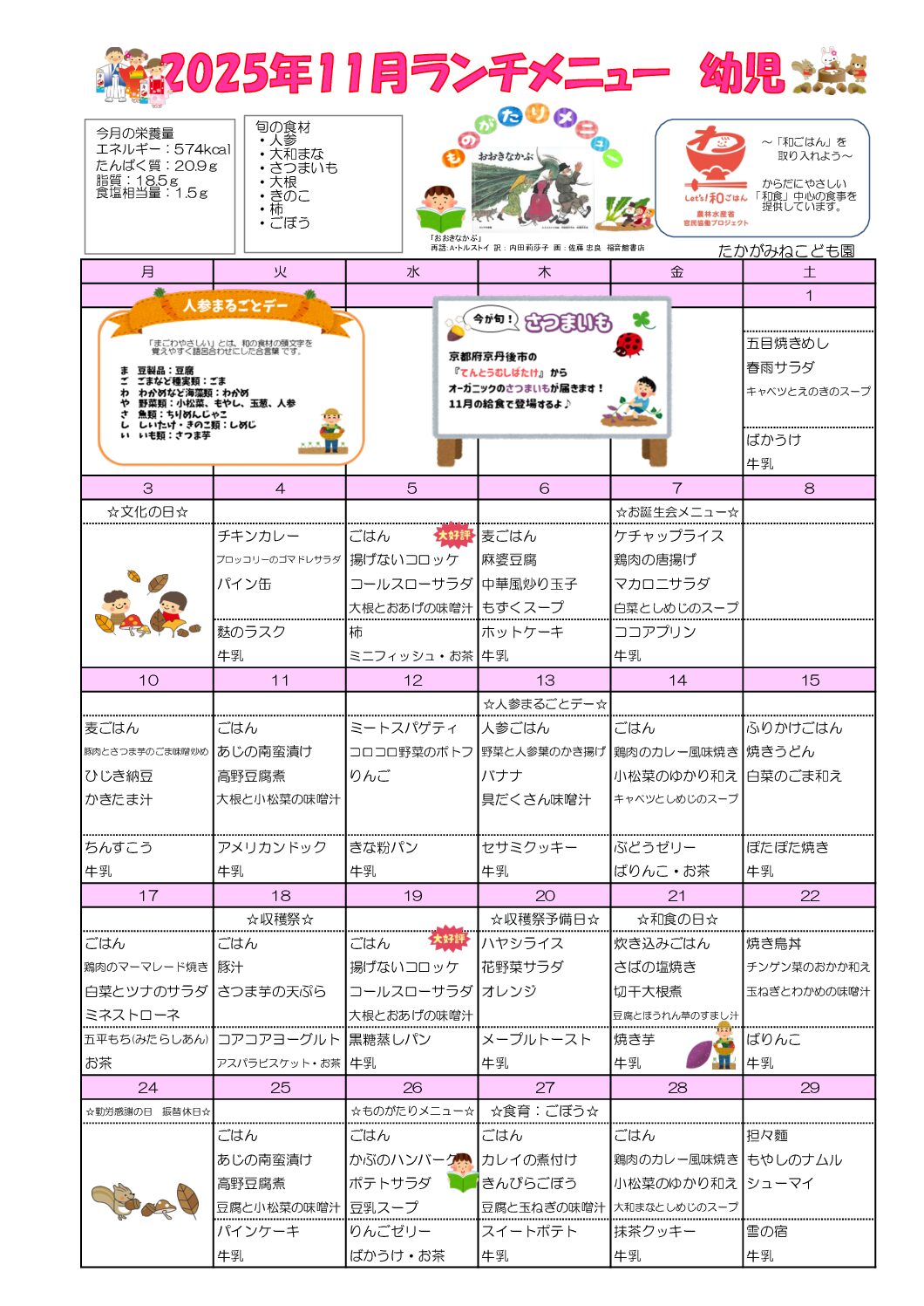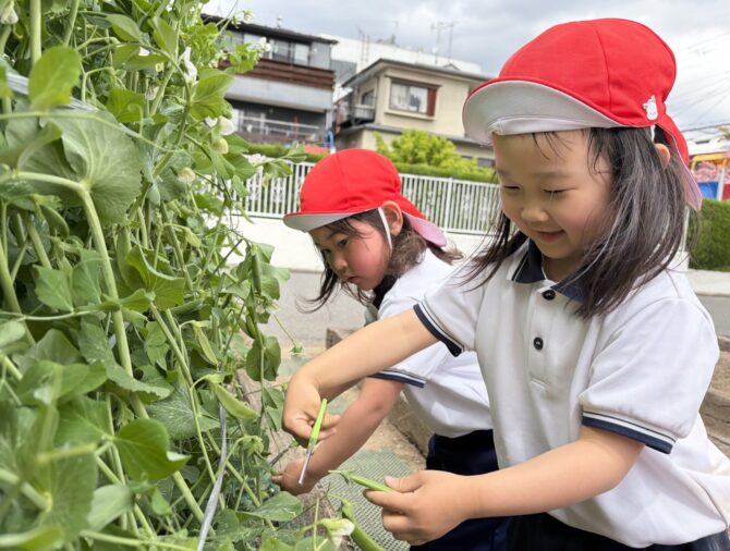 子どもたちが野菜や花の種を蒔き、観察やお世話をし、収穫後にクッキングを行います。また、京都市内だけではなく、滋賀県や大阪府などさまざまな場所へ行き、豊かな体験をします。