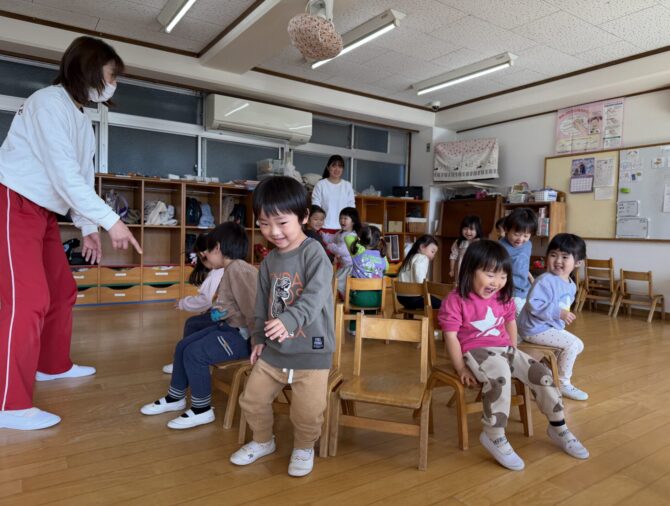 楽しい音楽に合わせて、椅子取りゲームに挑戦!