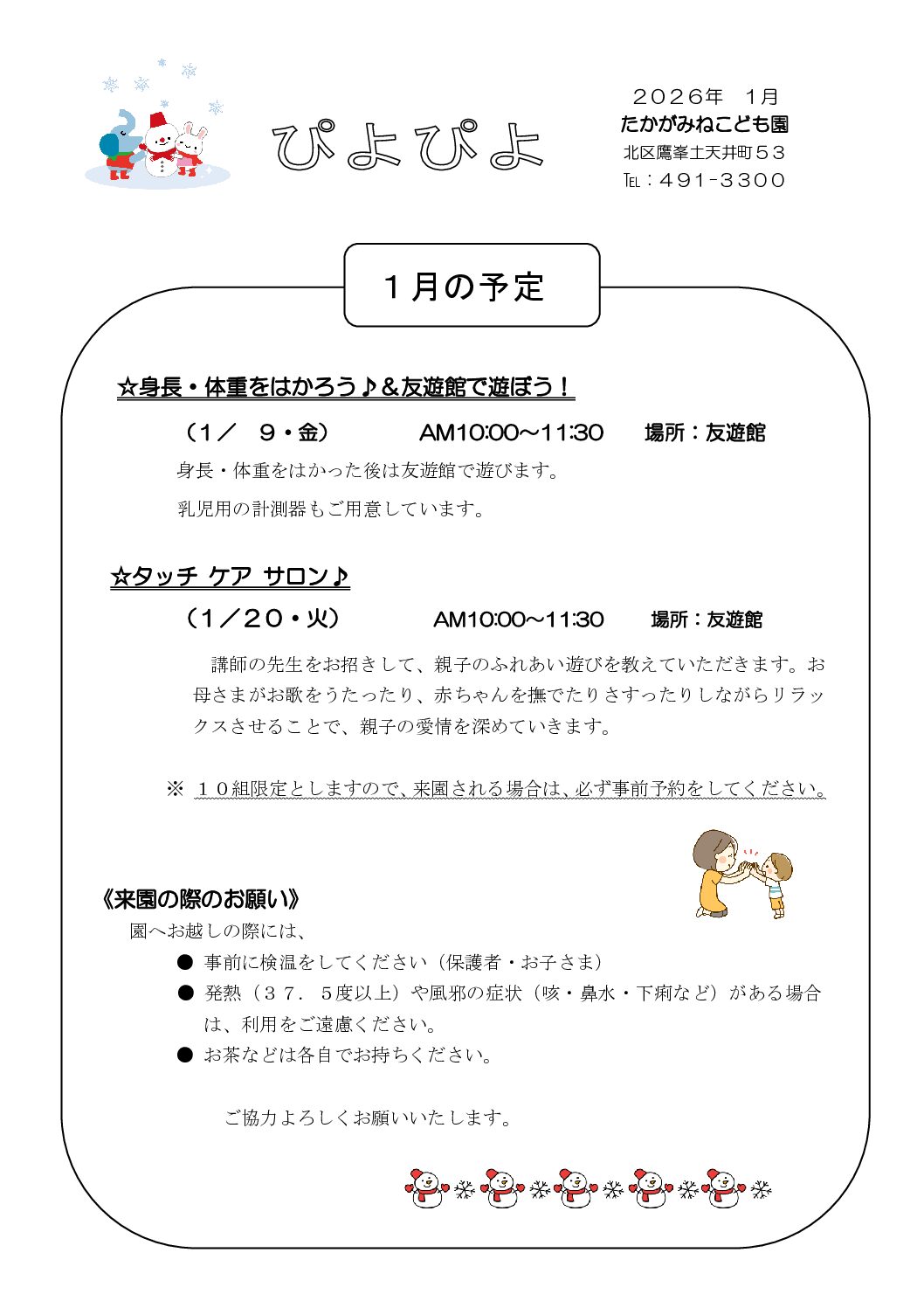 【ぴよぴよ】子育て支援情報(R8年1月)
