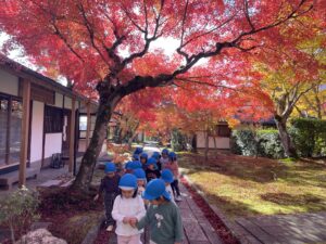 2024.11.28 園日記 鷹峯の紅葉PartⅣ☆ さくら(年少)組のお友だちが妙見宮と吟松寺へお散歩に行きました。もみじの葉が風に吹かれて落ちてくると「葉っぱの雨が降ってきた!」「葉っぱが踊ってるみたい♪」とお話していたお友だちです☆ < 前へ 次へ > お知らせ・ブログ一覧へ