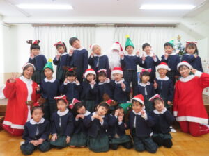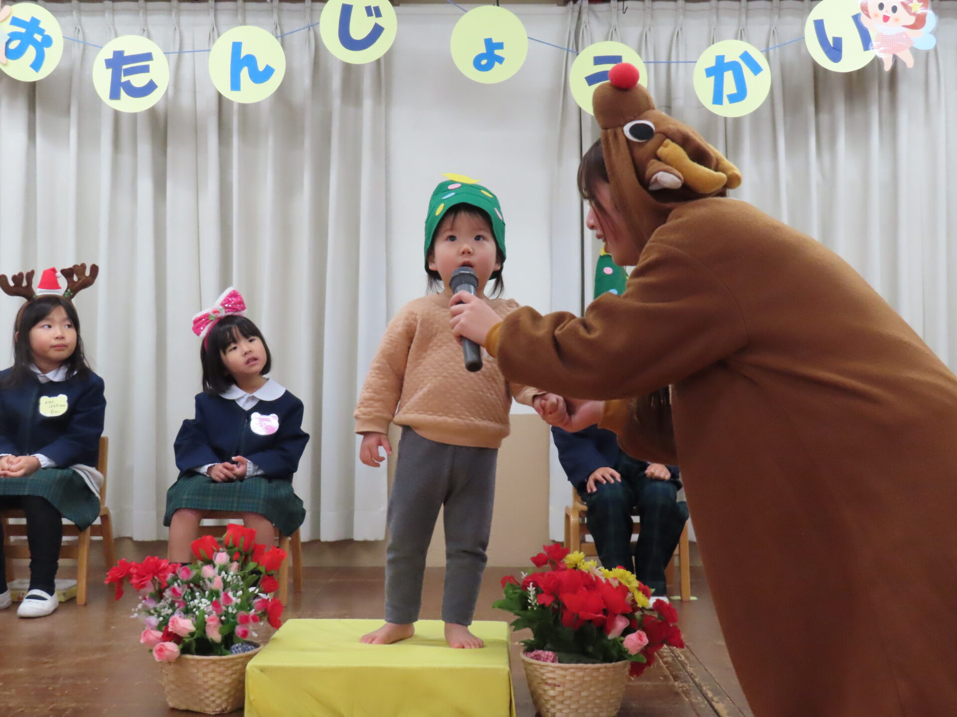お誕生会が終わると、みんなが楽しみにしていたクリスマス会☆ゆり(年中)組、うめ(年長)組のお友だちが参加しました。