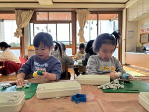 2025.01.08 園日記 粘土遊びをしたよ☆ ちゅうりっぷ組(2歳児)のお友だちが粘土遊びをしました!お友だちと一緒に「お野菜切るね!」とお話しながらお料理ごっこをしたり、恐竜を作って「ごはんどうぞ!」とお世話を楽しんでいました♪ < 前へ 次へ > お知らせ・ブログ一覧へ
