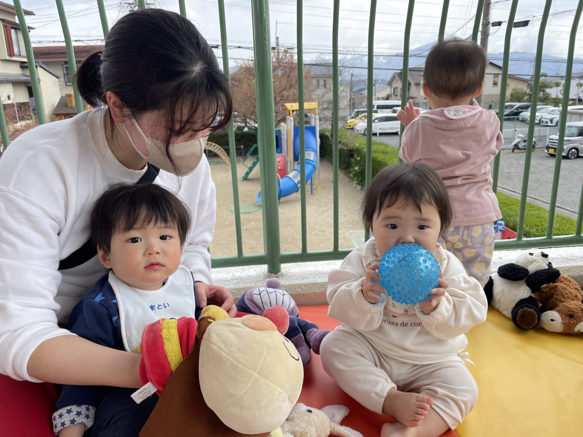 2025.04.11 園日記 2階テラスで遊んだよ♪ たんぽぽ1組(0歳児)のお友だちが、2階テラスで遊びました。ぬいぐるみやボールで遊んだり、道路を走るバスや車を見たりして楽しんでいましたよ☆ < 前へ 次へ > お知らせ・ブログ一覧へ