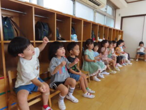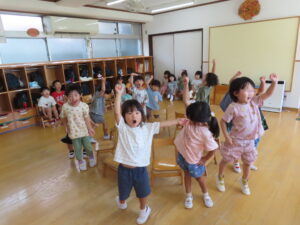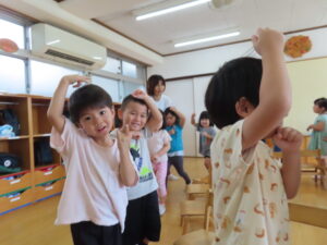 「絶対勝つぞー!」と気合いをいれてゲームスタート☆椅子に座れると大喜びしたり、負けてしまったお友だちも「頑張れー!空いてるよ!」と応援をしていました。最後まで残ったお友だちは、みんなから「おめでとう!」と声をかけてもらい、嬉しそうにしていました♪