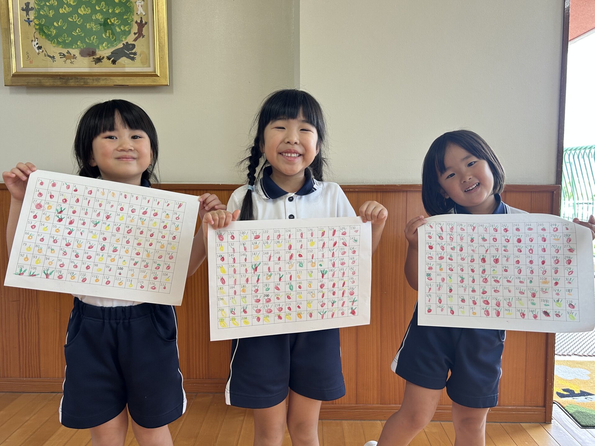 ゆり(年中)組が4月22日から大切に育ててきた水耕トマトの『ぷちとまちゃん』!現在、収穫数がなんと480個になりました!!「また赤くなってる!」「とれたよ!」と、子どもたちは毎日の発見に大喜び♪また、『ぷちとまちゃん収穫表』も5枚目になり、「トマトいっぱいになってきた!」「オレンジ色のトマトにしよう!」とお話しながら楽しく記録をしています!2018年の最高記録326個を大きく更新し、子どもたちは自信と嬉しさでいっぱいです☆まだお花もたくさん咲いていて、これからの収穫も期待大!『目指せ!500個!』を合言葉に、みんなでワクワクしながら育てていきたいと思います!