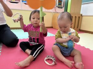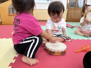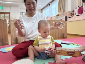 2025.09.25 園日記 リズム遊び楽しいね♪ たんぽぽ1組(0歳児)のお友だちがリズム遊びをしました。お歌に合わせてマラカスや鈴を振ったり、お友だちと一緒にタンブリンを叩いたりして楽しんでいました♪ < 前へ 次へ > お知らせ・ブログ一覧へ
