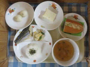 2025.09.26 給食 9月26日 ☆ものがたりメニュー☆ ふりかけごはん さばの塩焼き 高野豆腐の卵とじ きのこ汁 ポテサラサンド 牛乳 うめ(年長)組:お茶会のお菓子 < 前へ 次へ > お知らせ・ブログ一覧へ