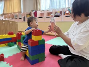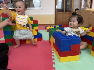 2025.09.29 園日記 大型レゴブロックで遊んだよ♪ たんぽぽ1組(0歳児)のお友だちが大型レゴブロックで遊びました。ブロックで作ったお家に入ってみたり、お椅子に座ってニコニコと嬉しそうにしたり…。また、電車に乗ったりと楽しんでいました☆ < 前へ 次へ > お知らせ・ブログ一覧へ