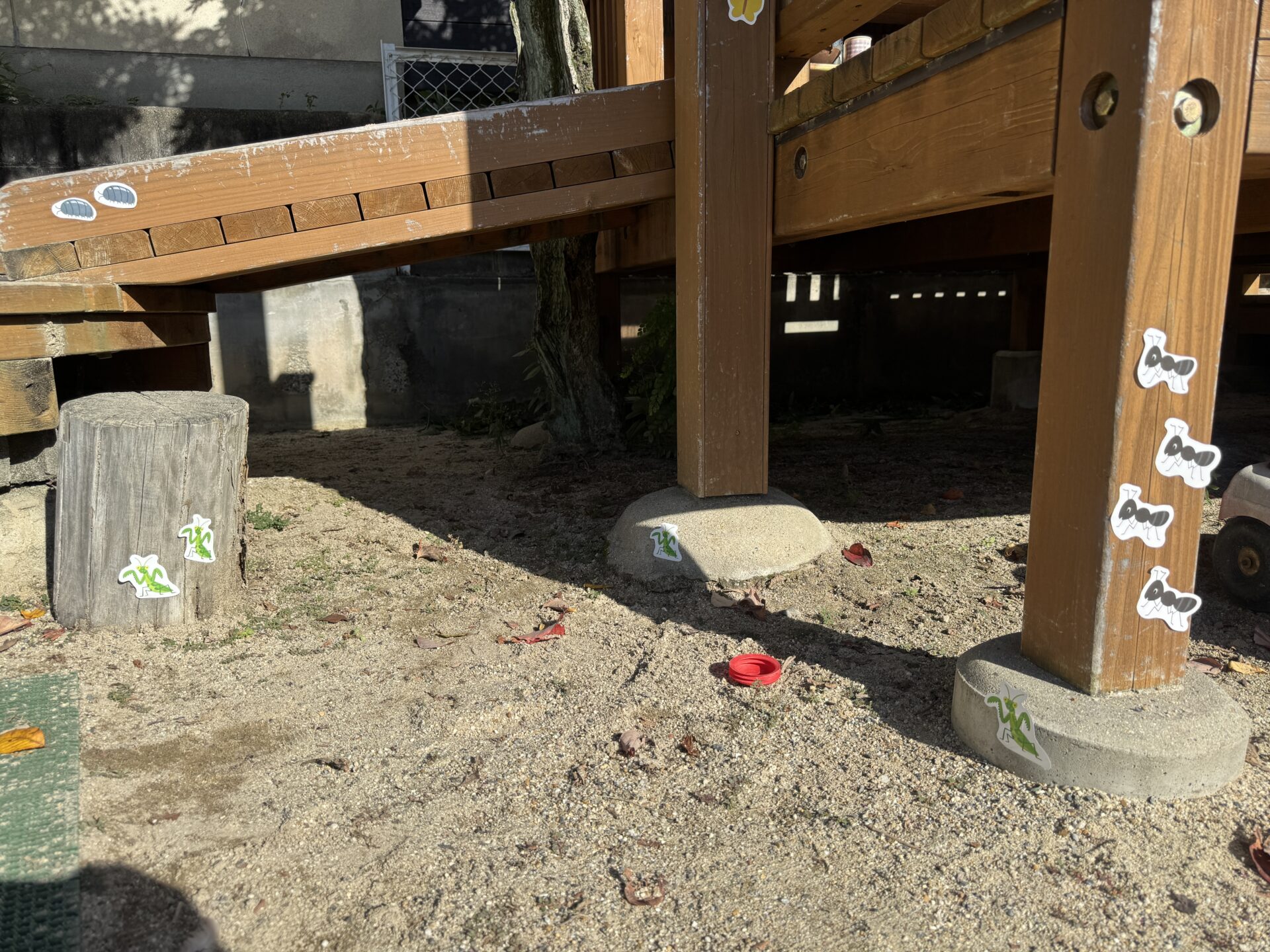 ちゅうりっぷ組(2歳児)のお友だちが、昨日、園庭で『虫とりあそび』をしました☆虫といっても本物ではなく、いろいろな虫が描かれたカードを園庭のあちこちに置き、それを見つけるあそびです。