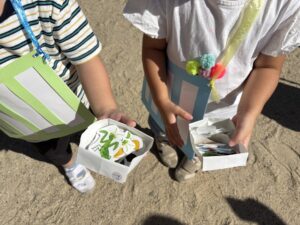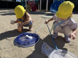「ありさんいた!」「こっちにもいるよ~」と、見つけるたびに大はしゃぎの子どもたち♪網を使ったり、手でそーっとつかまえたりしながら、夢中になって虫とりを楽しんでいました。