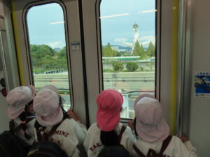 モノレールの車窓からは、万博公園の太陽の塔や日本一高い観覧車が見え、「わぁ、あれ見て!」と楽しそうに眺めていた子どもたち。