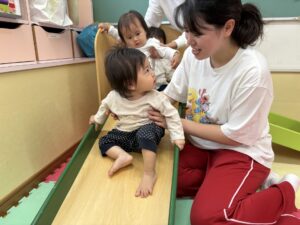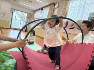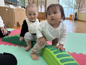 2025.10.22 園日記 元気いっぱい☆運動遊びをしたよ! たんぽぽ1組(0歳児)のお友だちが、運動遊びをしました。ウェイブバランス(バランス感覚を養う室内用の低床型平均台)に座ったり、トンネルの中をのぞいて「ばあ!」と顔を出していたみんな。笑顔いっぱいで楽しんでいました☆ < 前へ 次へ > お知らせ・ブログ一覧へ