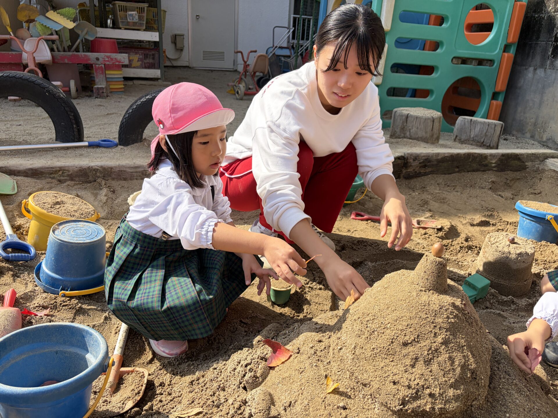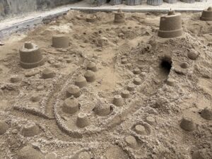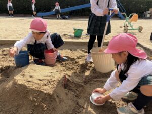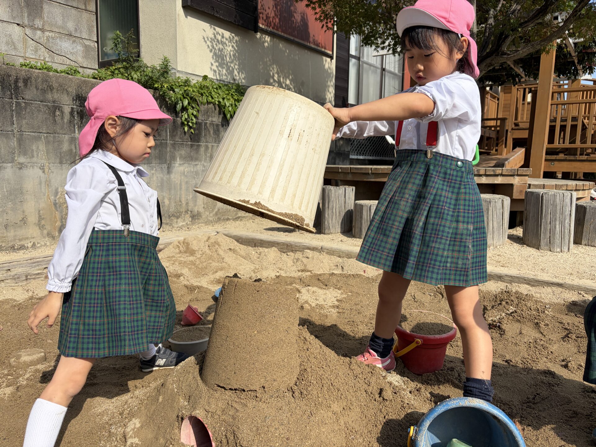 うめ(年長)組のお友だちが、園庭の砂場でお城作りをしました♪