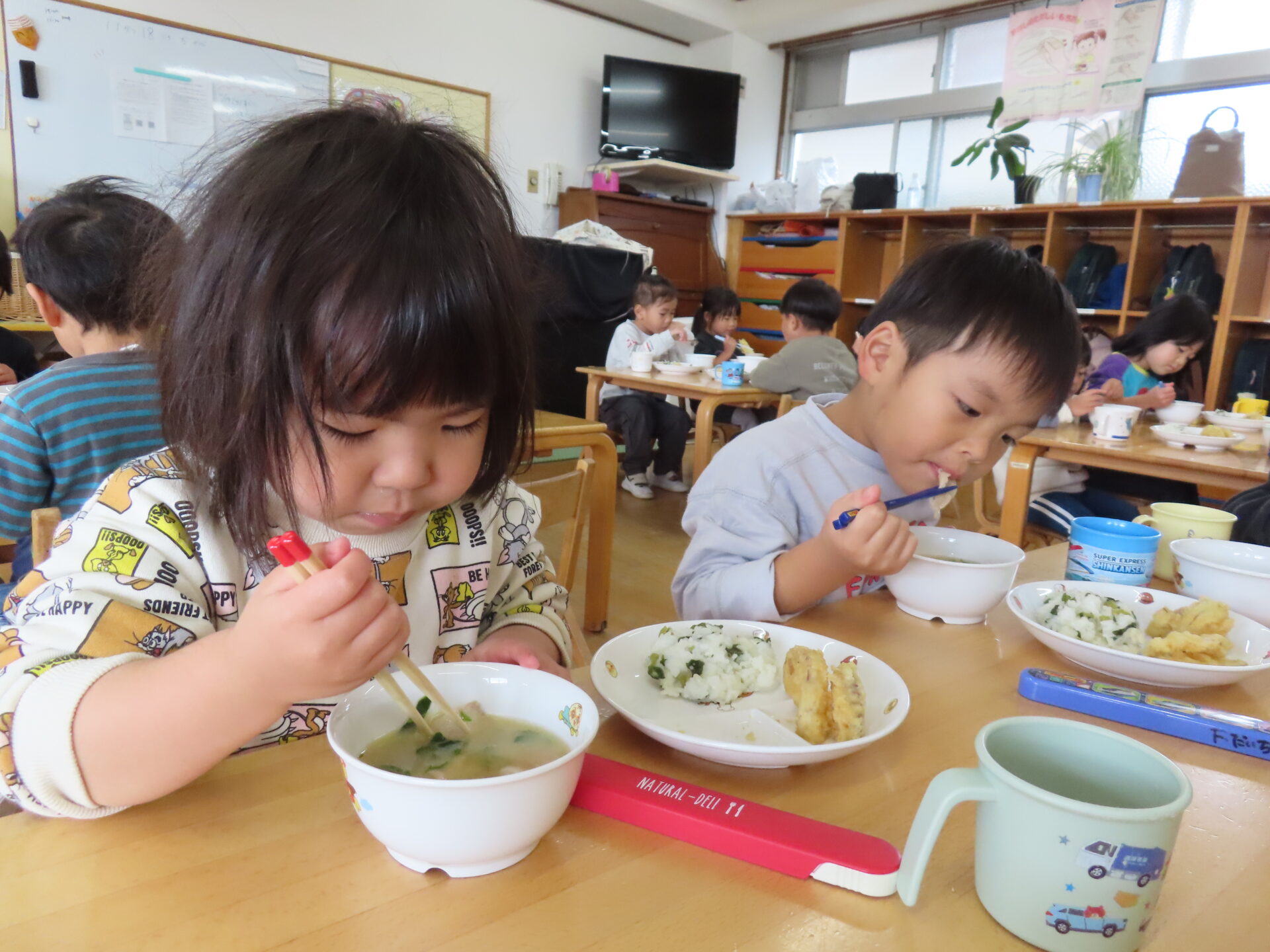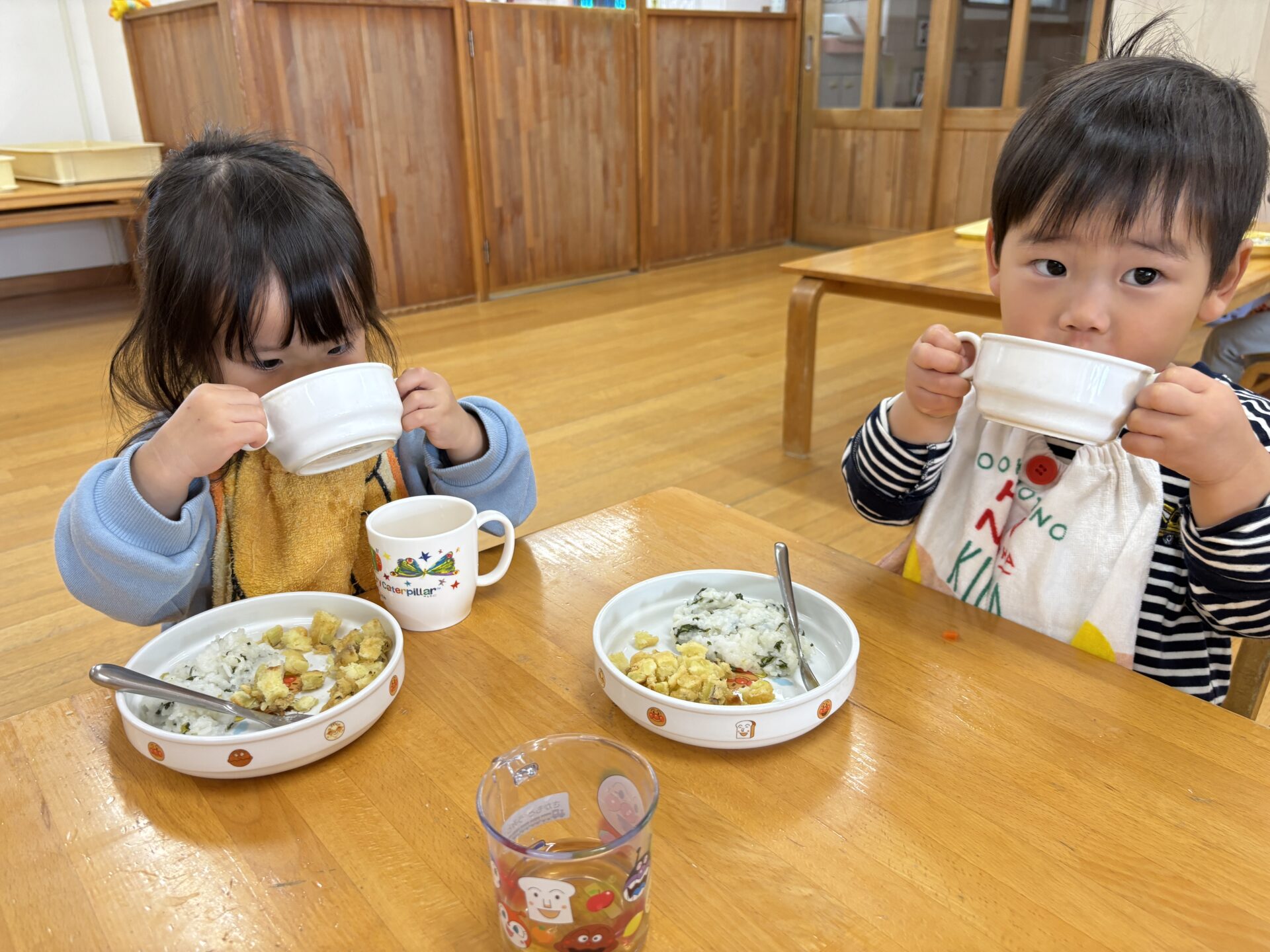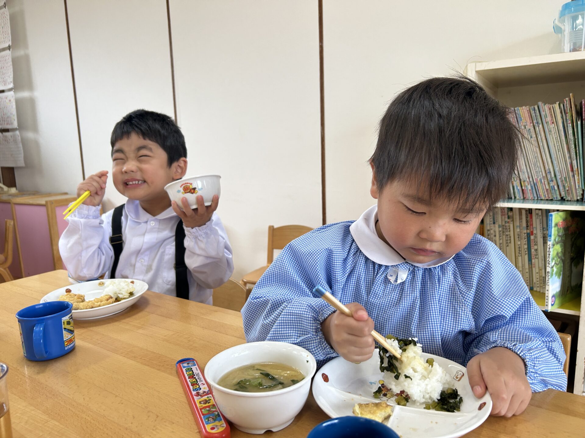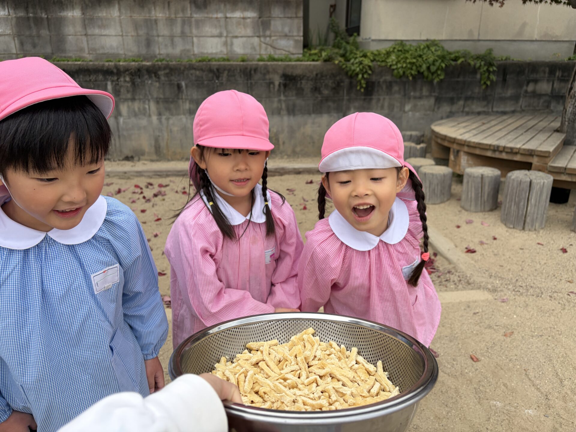 今日はみんなが楽しみにしていた収穫祭☆メニューは、畑でとれた大根やサツマイモを使った『豚汁』です!