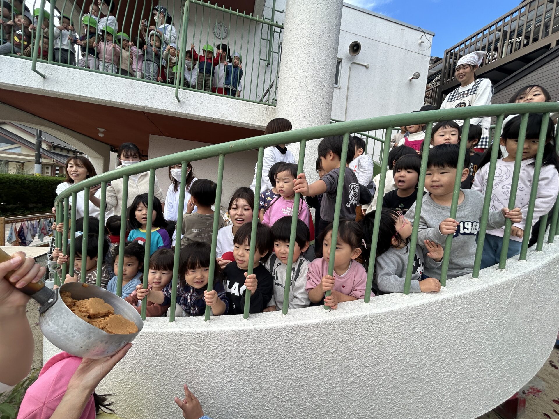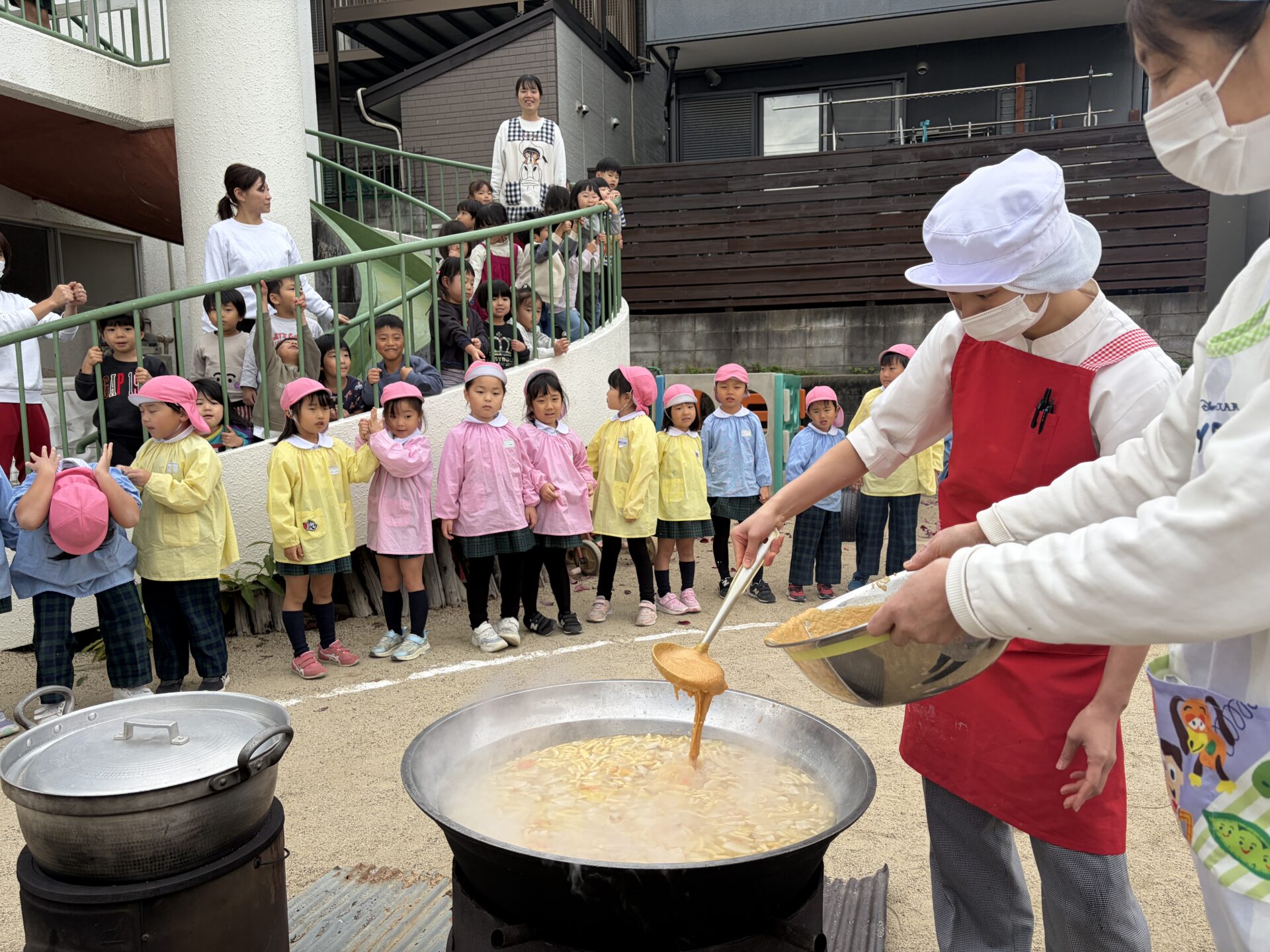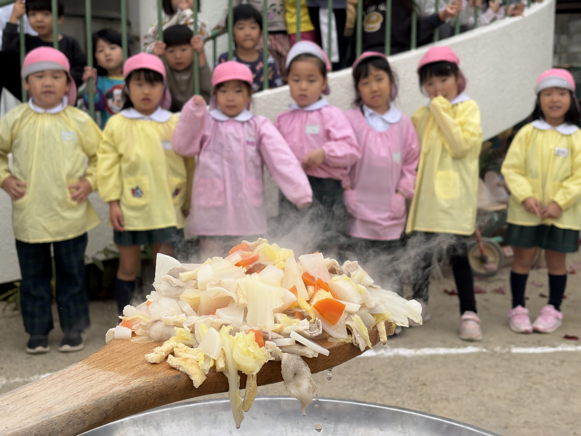 豚汁美味しいね☆~園庭で収穫祭~