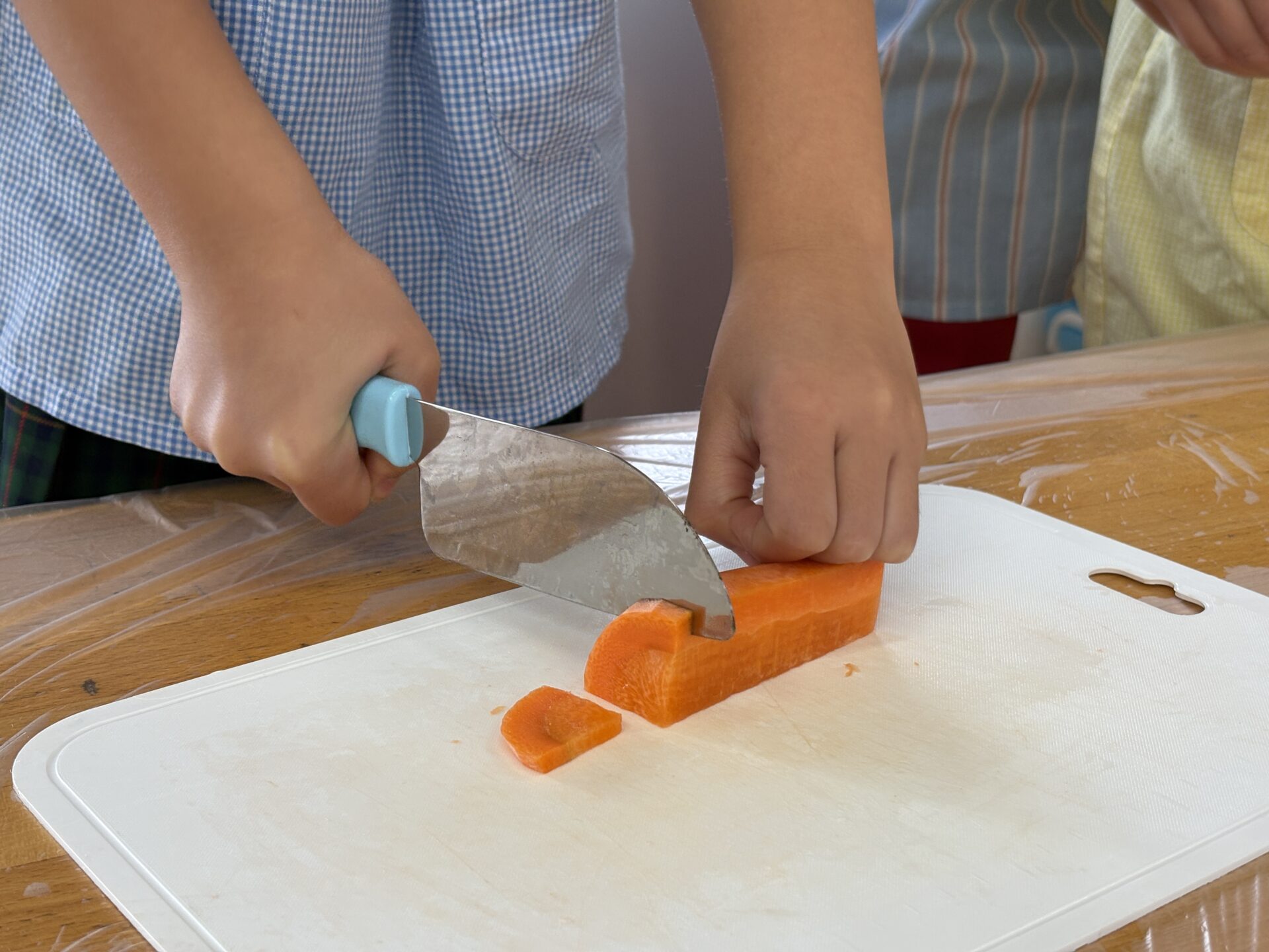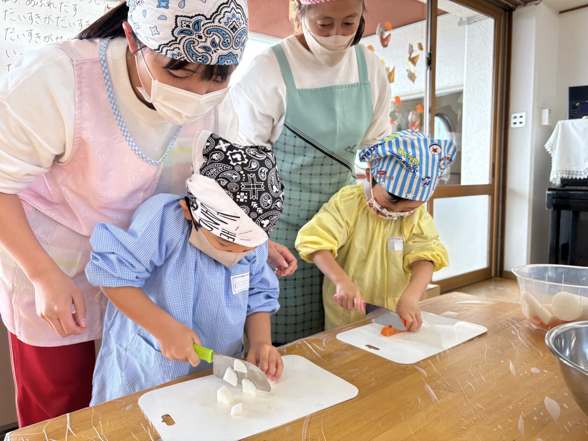 給食の時間には、「これ僕が切った大根かも!」と嬉しそうに食べる姿も見られ、収穫祭を通して、食べ物を育てる大変さや料理の楽しさを知り、感謝の気持ちを持つ貴重な経験になりました。