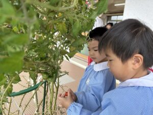 毎朝登園すると「赤くなってきてる!」「トマトの赤ちゃんできてる!」と目を輝かせて観察しながら、その成長をずっと楽しみに見守ってきました。6月23日に1個目を収穫してから約5カ月間、ぷちとまちゃんはたくさんの実をつけてくれました。
