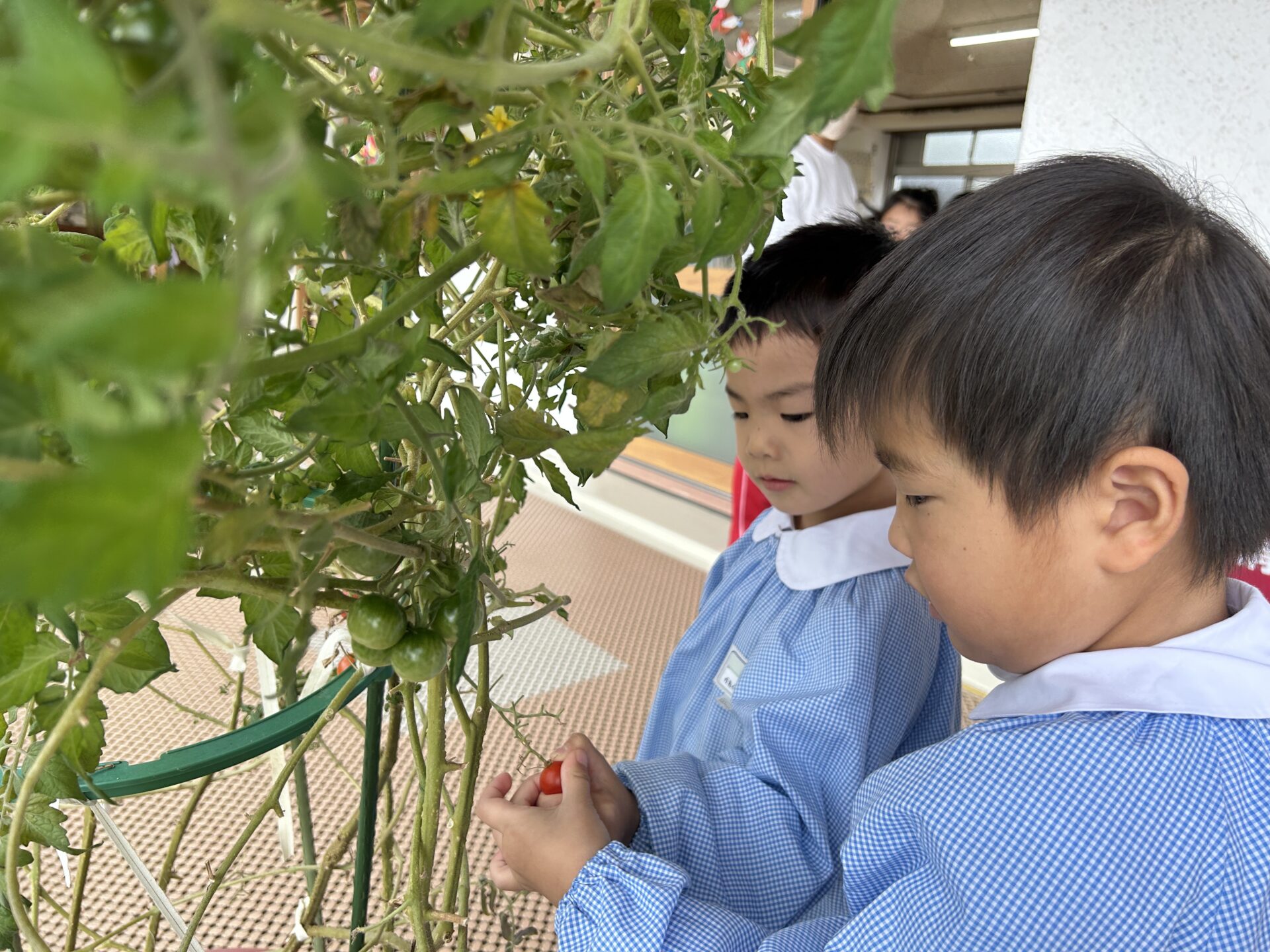 ゆり(年中)組のお友だちが、4月22日から大切に育ててきた水耕トマトの『ぷちとまちゃん』。いよいよお別れの日を迎えました。