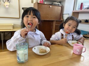 収穫したトマトは、「おいしいトマトをたくさんありがとう!」とお話ししながら、おやつでおいしくいただきましたよ♪
