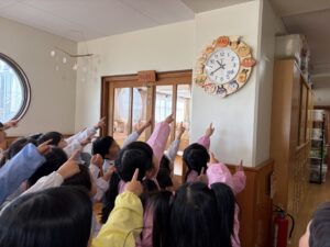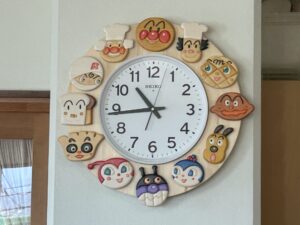 また、2階の手洗い場には、アンパンマンに出てくるキャラクターのついた新しい時計も!「6の数字のところはばいきんまんだね」とお友だちとニコニコ笑顔でお話ししながら眺めていました。