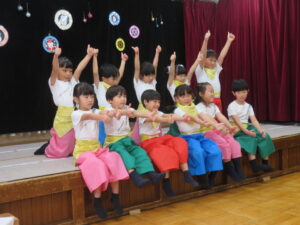 おゆうぎでは『♪それもいいね♪』と『♪ネクタリン ♪』を踊りました。ダンスが大好きなみんなは、お友だちと教え合いながら毎日楽しく練習に取り組んできました☆本番でも素敵な笑顔で元気いっぱいの踊りを披露していましたね♪