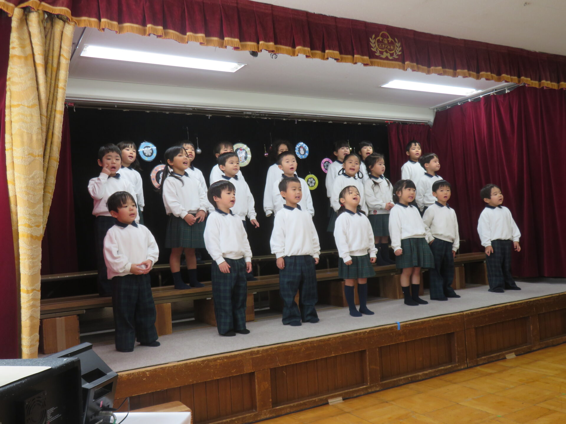 第49回『Kids’ Winter Stage』が開催しました!この日をずっと心待ちにしていた子どもたち。「早くお家の人に見てもらいたい!」と、毎日の練習にもますます力が入っていました。そして迎えた本番。ステージに立った子どもたちは、ちょっぴり緊張しているお友だちもいて、泣いてしまったり、固まってしまったり。いつもの練習とは少し違う表情も見られましたが、お家の人の姿を見つけると「ママ〜!」と嬉しそうに手を振ったり、にこっと笑顔になっていました♪元気にうたう姿も楽しく身体を動かす姿もとても素敵でしたね☆