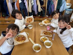 待ちに待った給食の時間では、「うわぁ〜おいしい!」「自分で作ったからもっとおいしい!」とお話しながら嬉しそうに食べていました♪