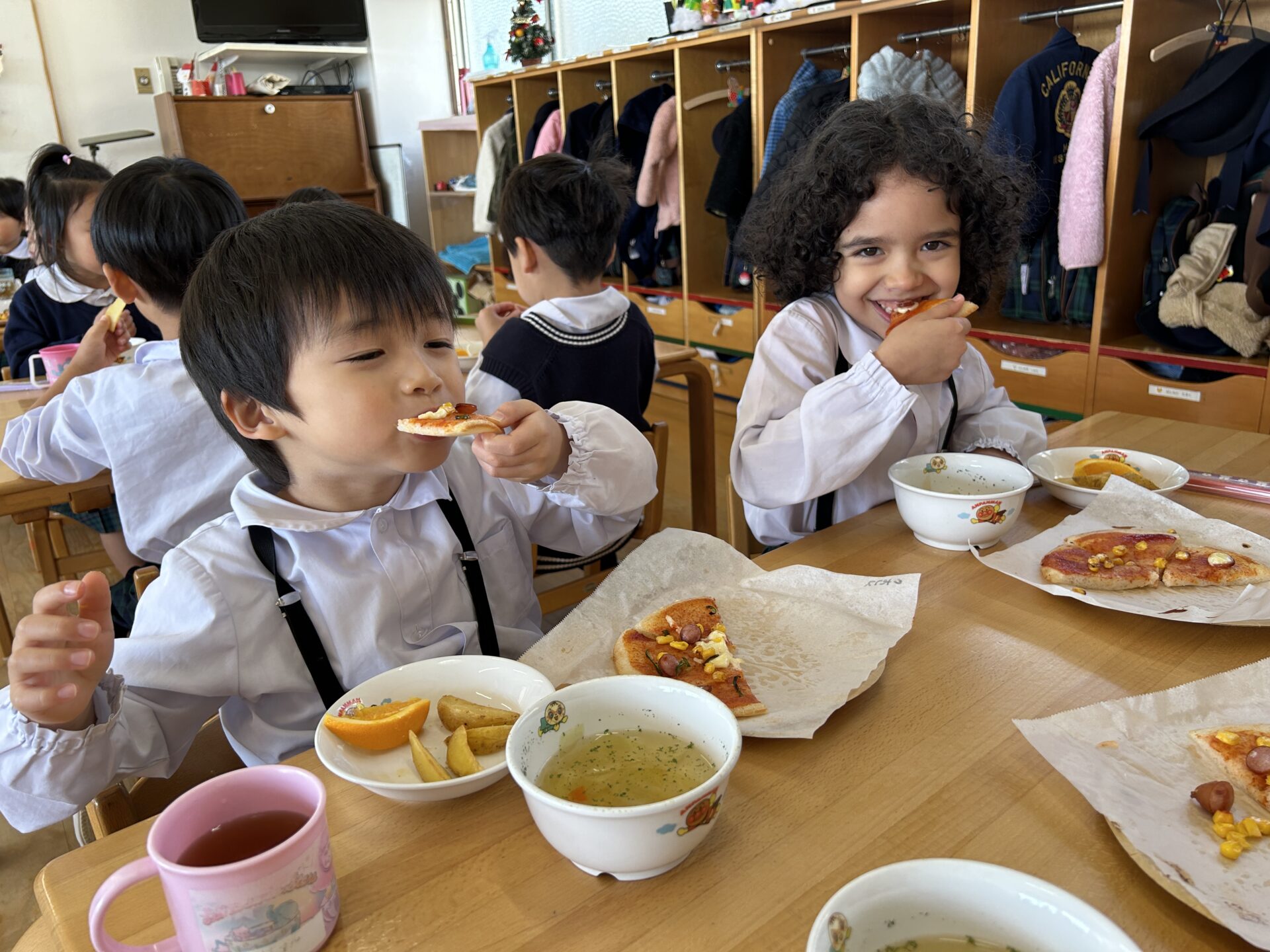 待ちに待った給食の時間では、「うわぁ〜おいしい!」「自分で作ったからもっとおいしい!」とお話しながら嬉しそうに食べていました♪