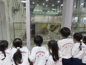 実際にごみ収集車からごみが出てくる様子や、大きなクレーンがごみをつかむ姿を間近で見て、子どもたちは大興奮でした!その後は、焼却炉の中の様子を教えてもらったり、燃えたごみは灰になって山に埋め立てられていることを知ったりと、たくさんの学びがありました。職員さんからは「このままだと灰を埋める場所がなくなってしまうので、食べ物や物を大切にしてごみを減らしてね」とお話をいただき、みんなでお約束もしました♪