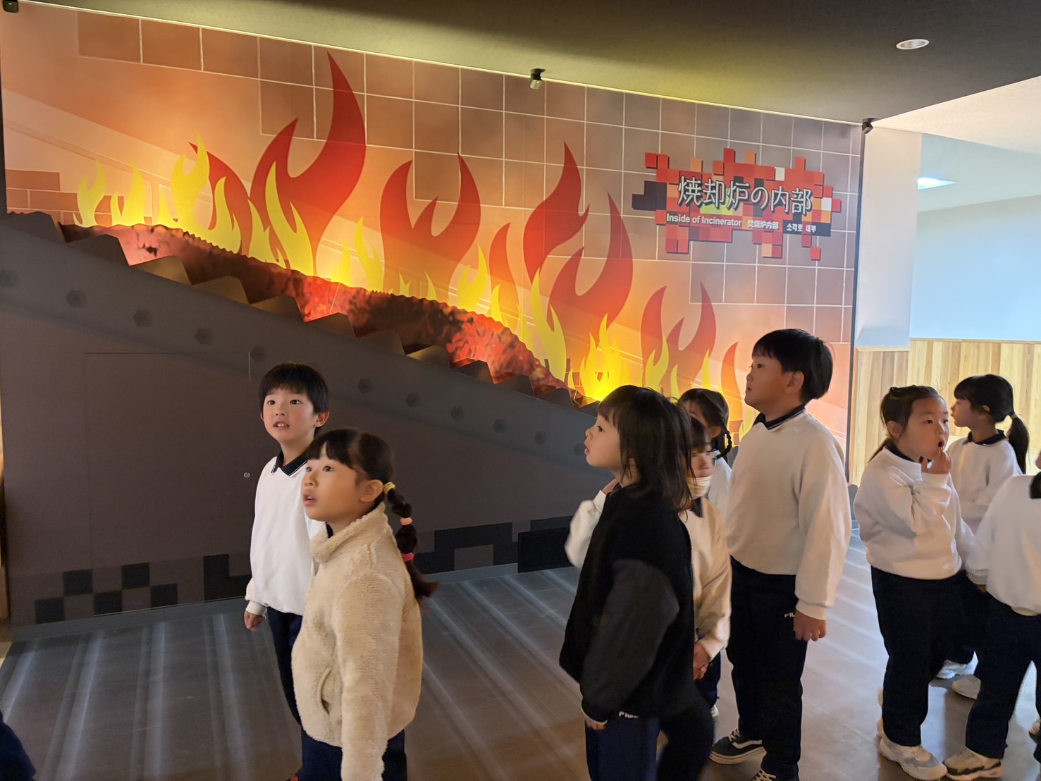 実際にごみ収集車からごみが出てくる様子や、大きなクレーンがごみをつかむ姿を間近で見て、子どもたちは大興奮でした!その後は、焼却炉の中の様子を教えてもらったり、燃えたごみは灰になって山に埋め立てられていることを知ったりと、たくさんの学びがありました。職員さんからは「このままだと灰を埋める場所がなくなってしまうので、食べ物や物を大切にしてごみを減らしてね」とお話をいただき、みんなでお約束もしました♪