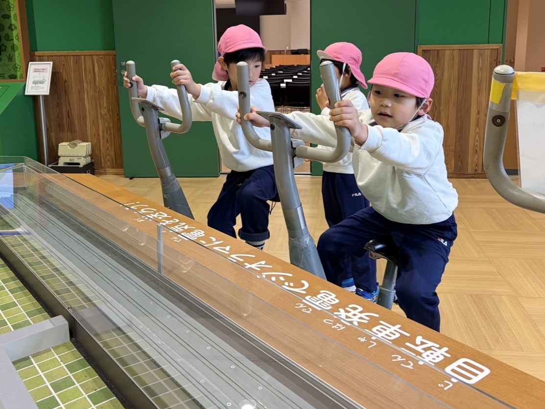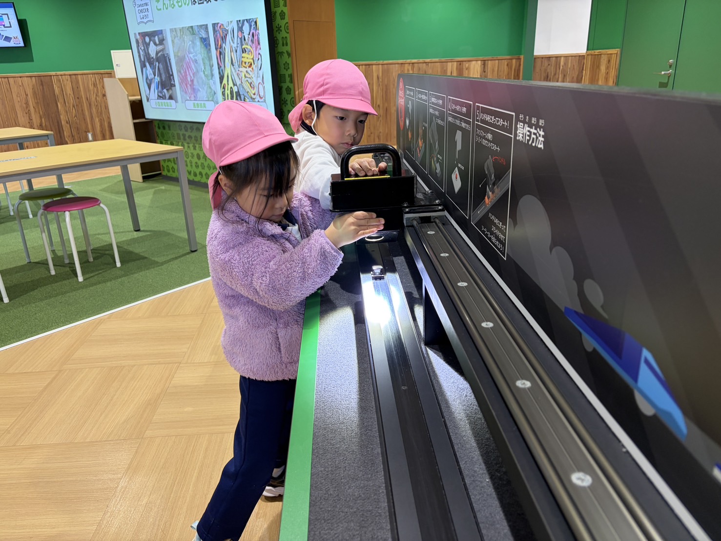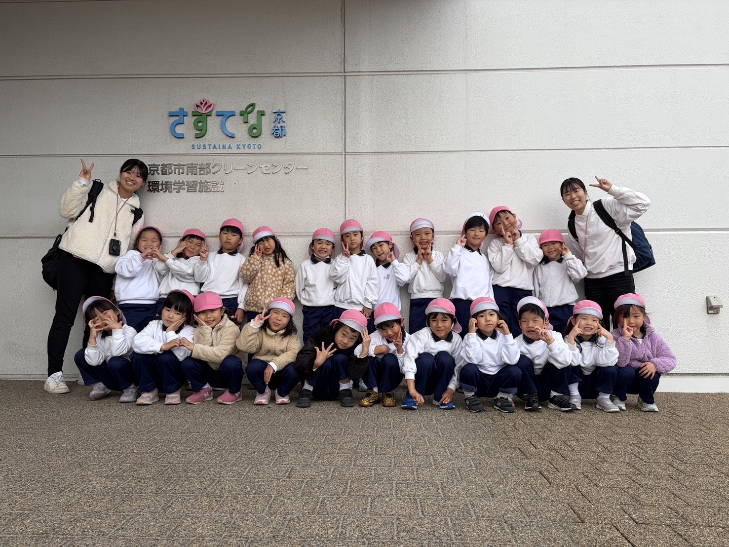 うめ(年長)組のお友だちが、園外保育で南部クリーンセンター内にある環境学習施設『さすてな京都』へ行きました。はじめに『ちいさいごみしゅうしゅうしゃ ぱっくん』(作:薫くみこ・絵:オームラトモコ)という絵本を読んでもらい、その後みんなで“ぱっくん探し”に出発☆