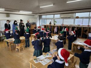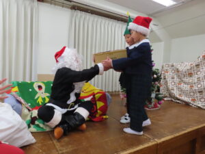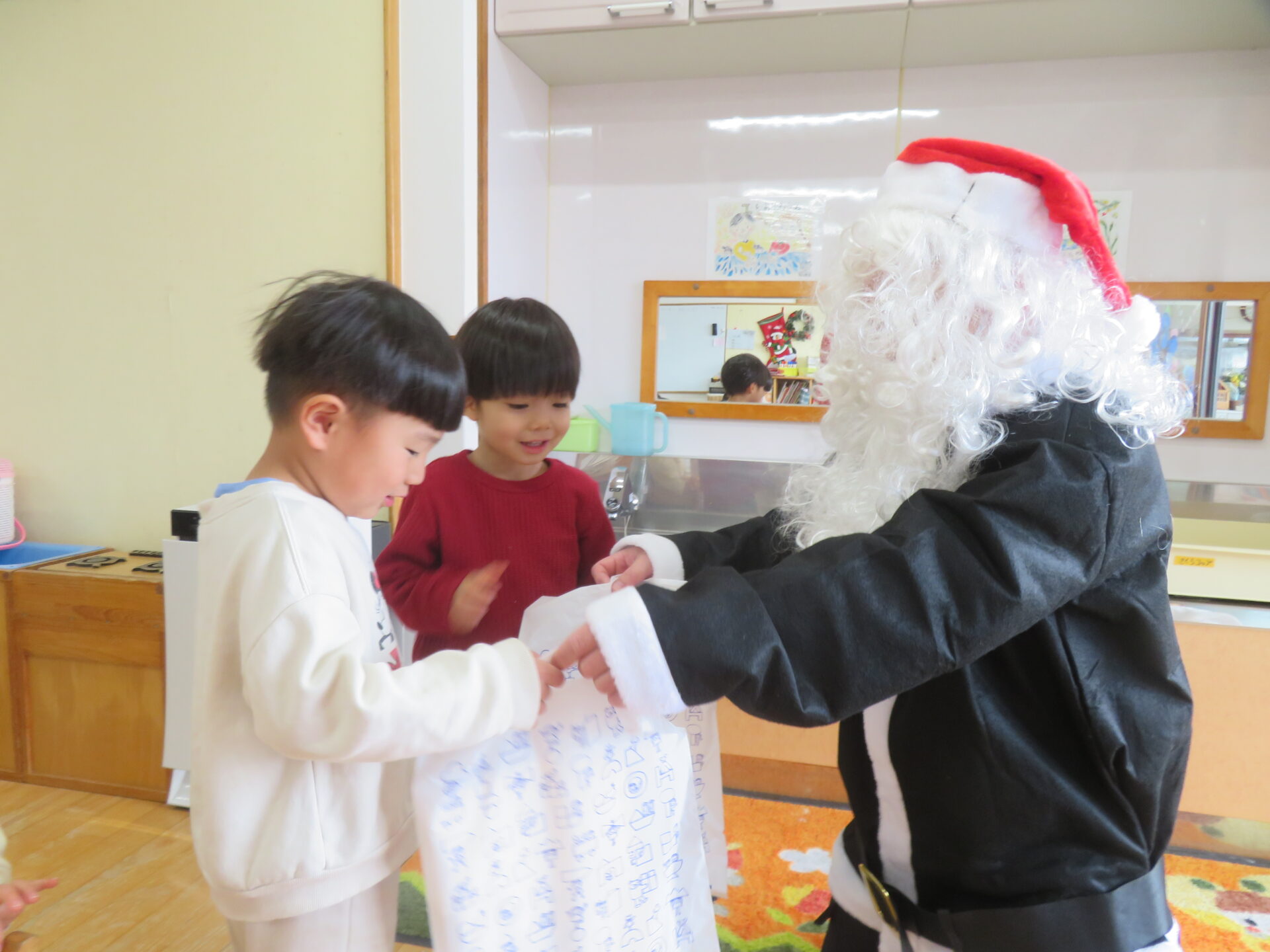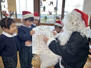 その後、サンタさんは各クラスを回ってプレゼントを渡したり、一緒に写真を撮ったりしながら、子どもたちと楽しいひと時を過ごしました。