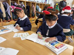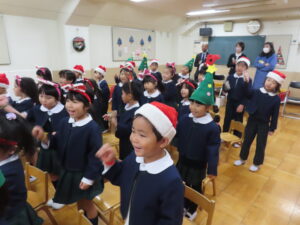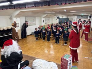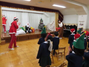 子どもたちが楽しみにしていたクリスマス会☆ゆり(年中)組・うめ(年長)組のお友だちが参加しました。