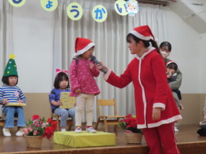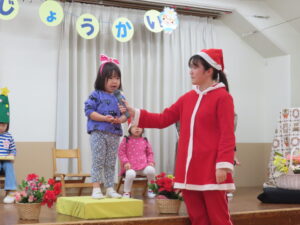 他にも、園長先生からプレゼントをいただいたり、天井からぶら下がった風船をタッチする『ぐんぐんのびて』など、