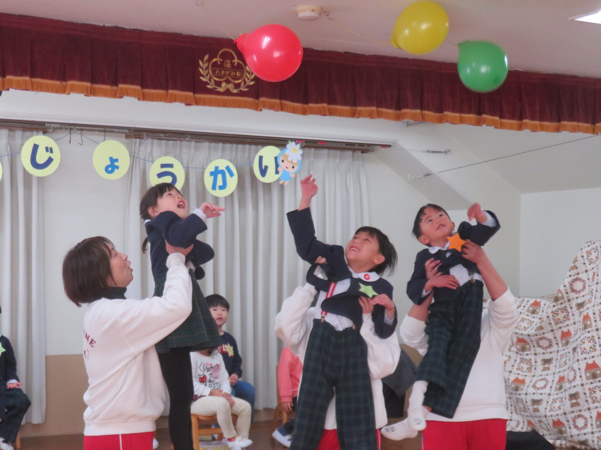 他にも、園長先生からプレゼントをいただいたり、天井からぶら下がった風船をタッチする『ぐんぐんのびて』など、楽しい催しがいっぱいでした☆