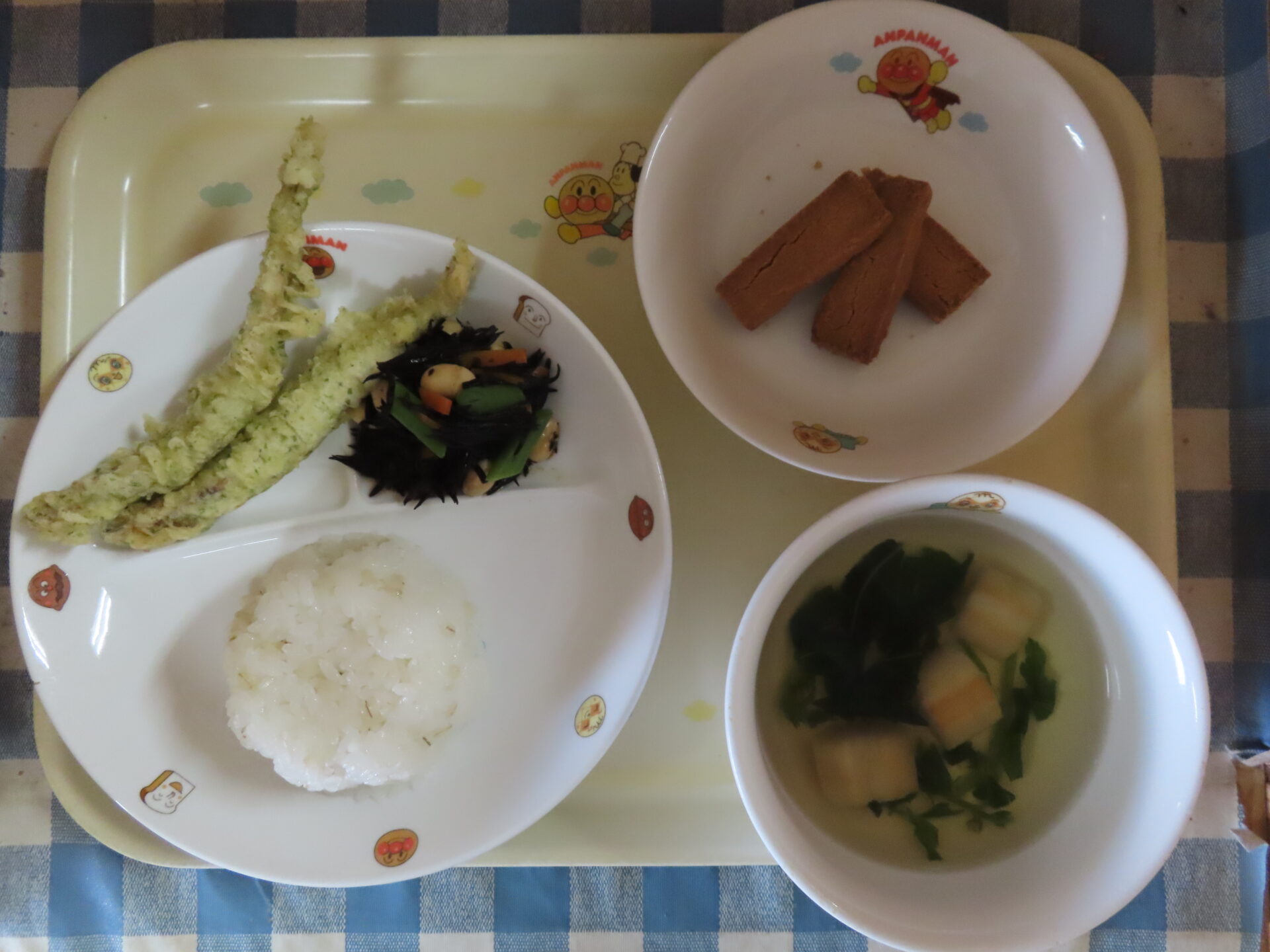 2026.01.13 給食 1月13日 麦ごはん ししゃもの磯辺揚げ(乳児組:ホキの磯辺揚げ) ひじきと大豆煮 モロヘイヤと麩のすまし汁 きな粉ちんすこう 牛乳 < 前へ 次へ > お知らせ・ブログ一覧へ