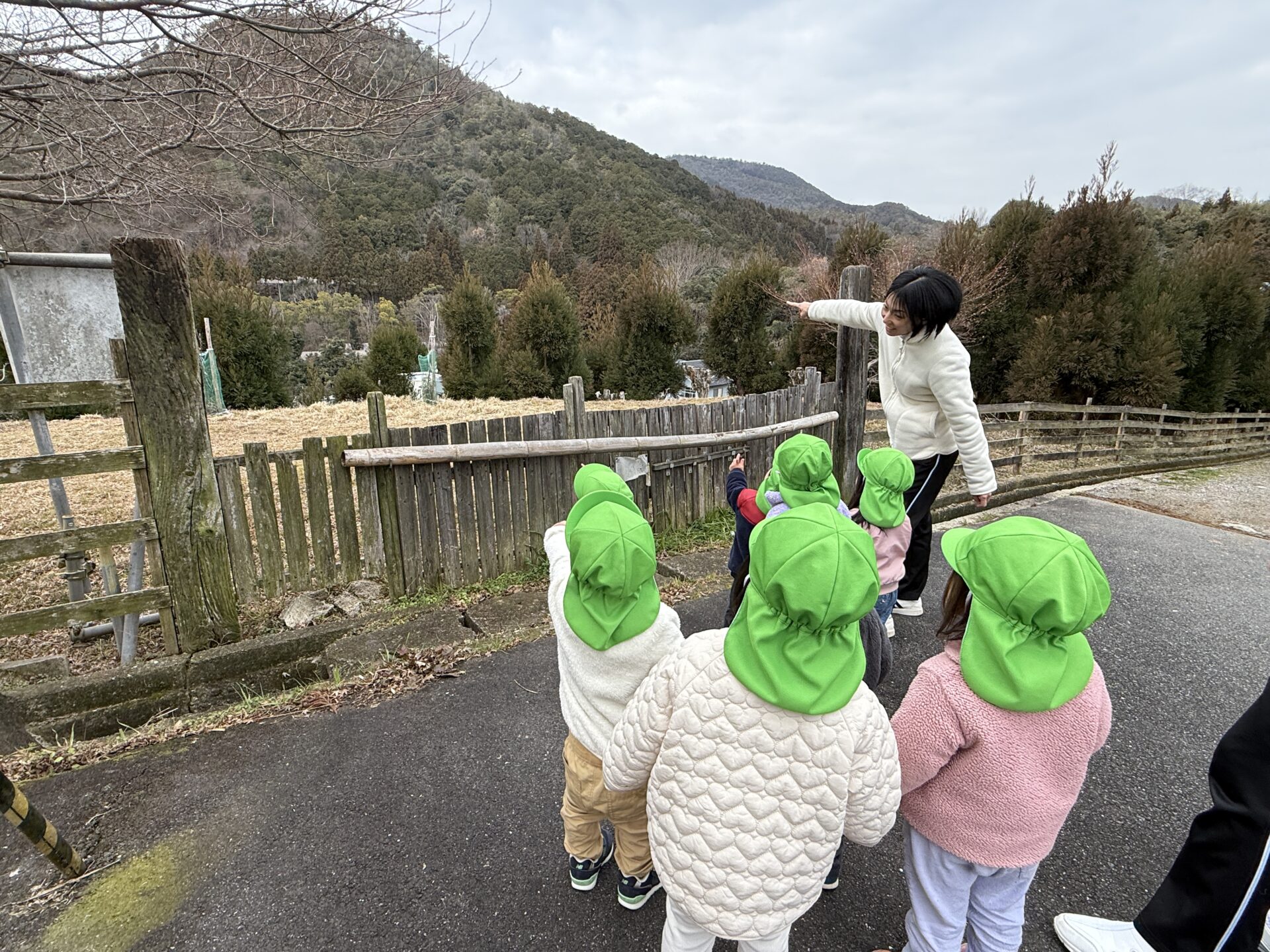 そこで今日は園の前をお散歩しました。お友だちと手をつないで歩きながら、「バス大きいね!」と周りの景色を楽しんでいた子どもたち☆お山に向かって「お~い!アンパンマーン!」と呼びかける可愛らしい姿も見られましたよ♪