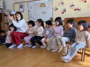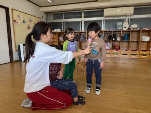 遊びを通して、音を聞くことや順番を待つこと、お友だちを応援する気持ちを感じながら、楽しい時間を過ごしました♪