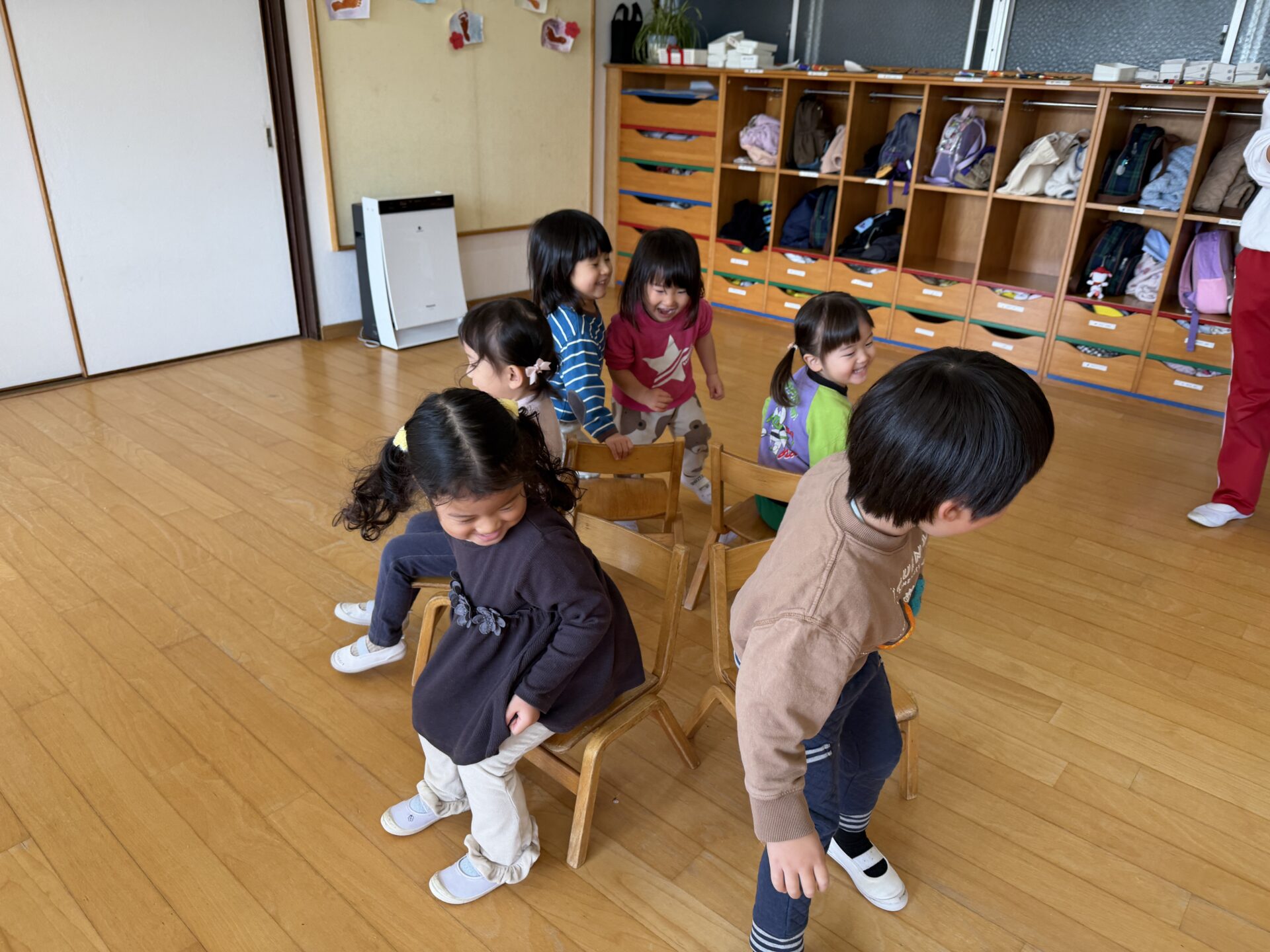 楽しい音楽に合わせて、椅子取りゲームに挑戦!