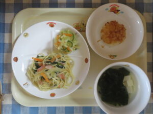 ウインナーとほうれん草のスパゲッティ