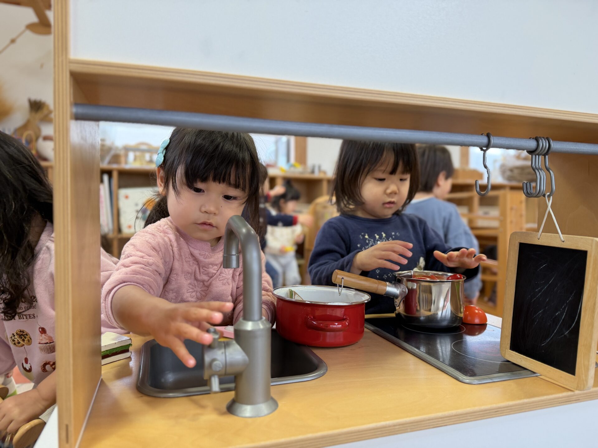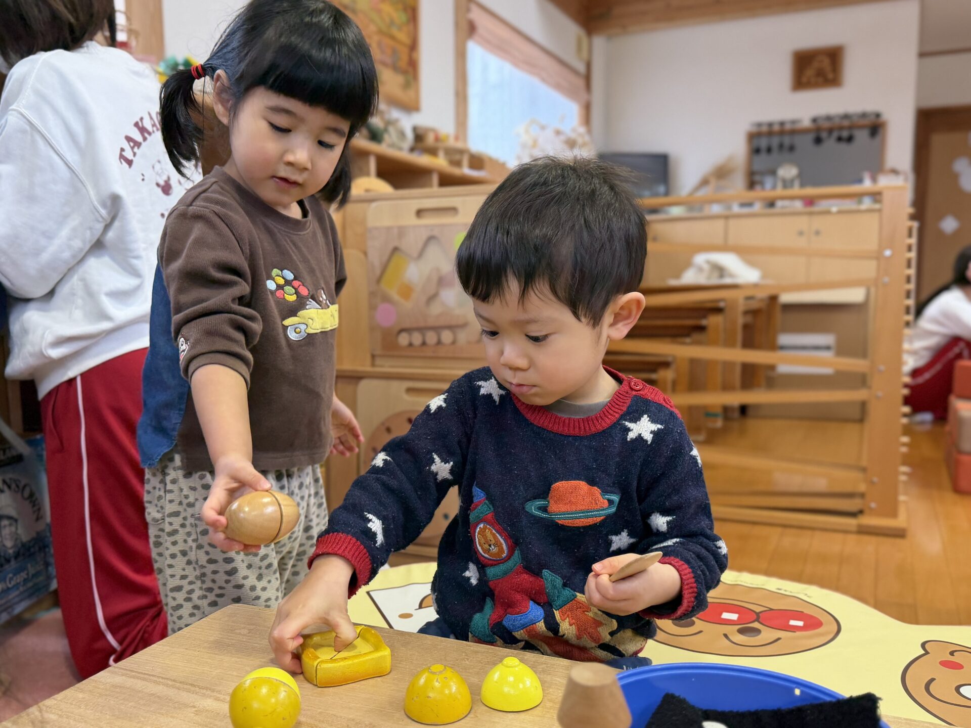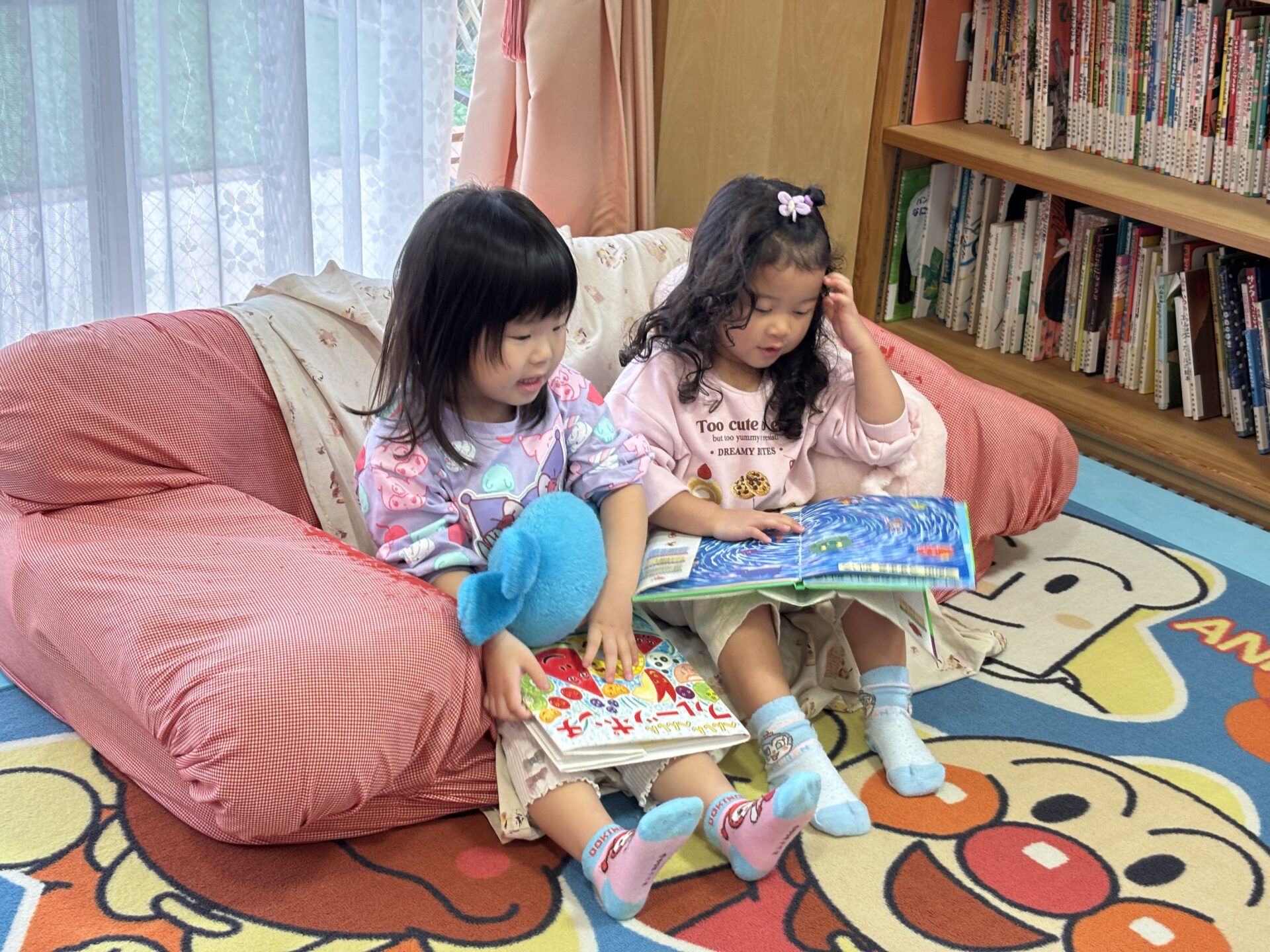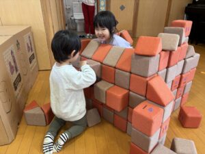 ちゅうりっぷ組(2歳児)のお友だちが、友遊館で遊びました。お友だちと絵本を読んだり、布製キューブを使ってお家を作ったりして遊んでいた子どもたち!また、「いらっしゃいませ~!」「カレーできたよ!」とお鍋に食材をたくさん入れておままごとを楽しんでいました♪