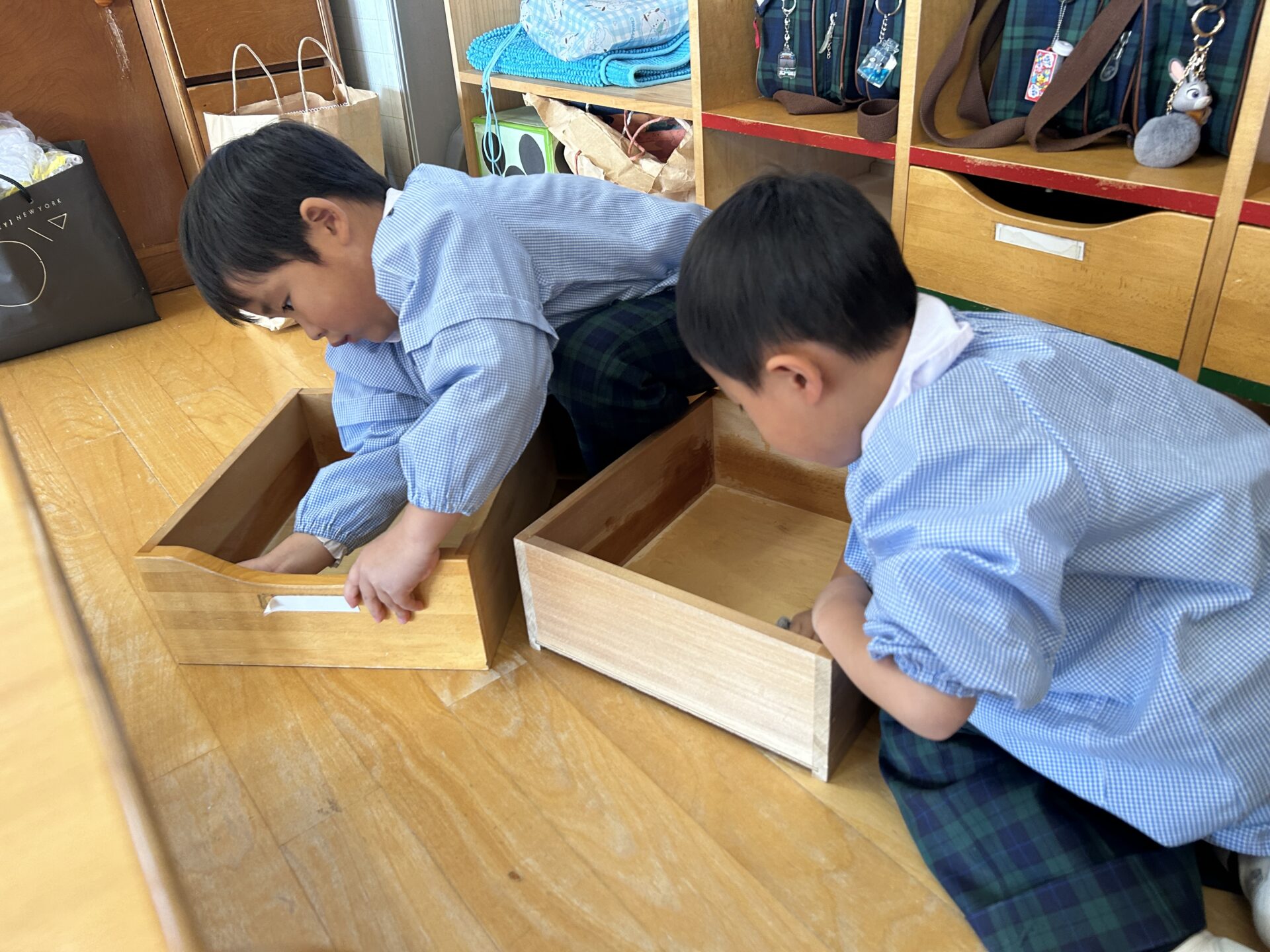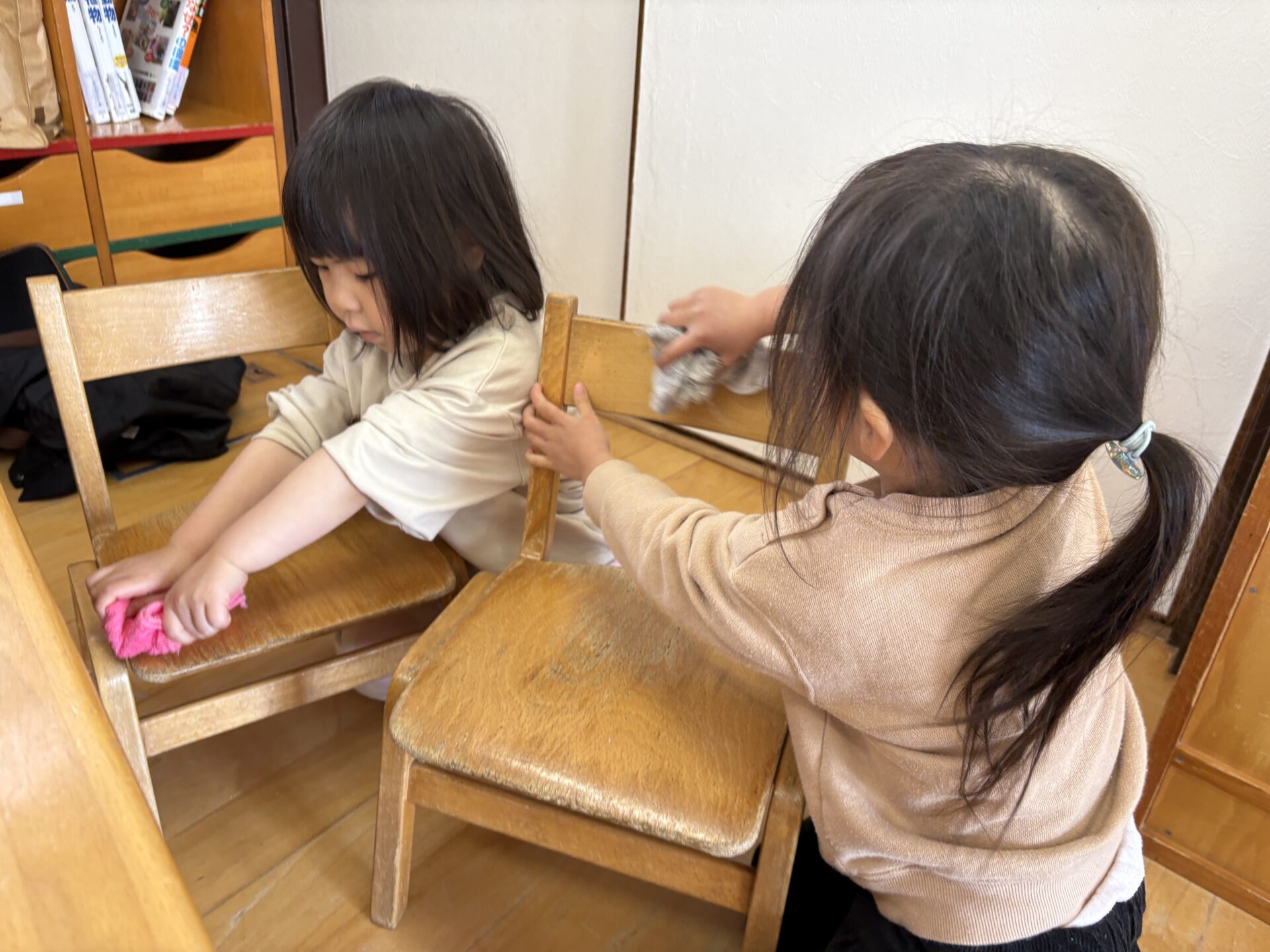 その後の大掃除では、「次のお友だちのためにピカピカにする!」と、一年間使ったロッカーや椅子などを一生懸命きれいにしてくれました。