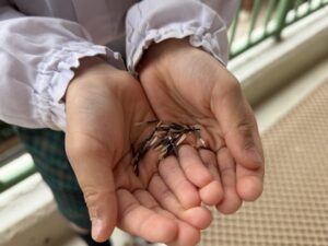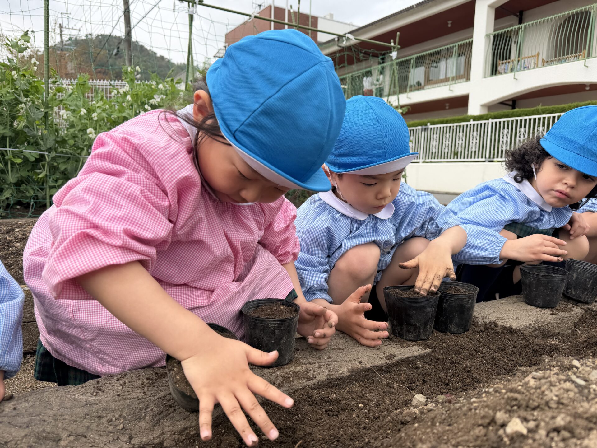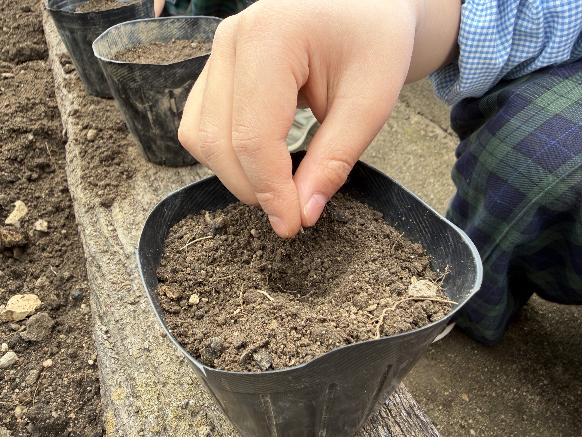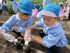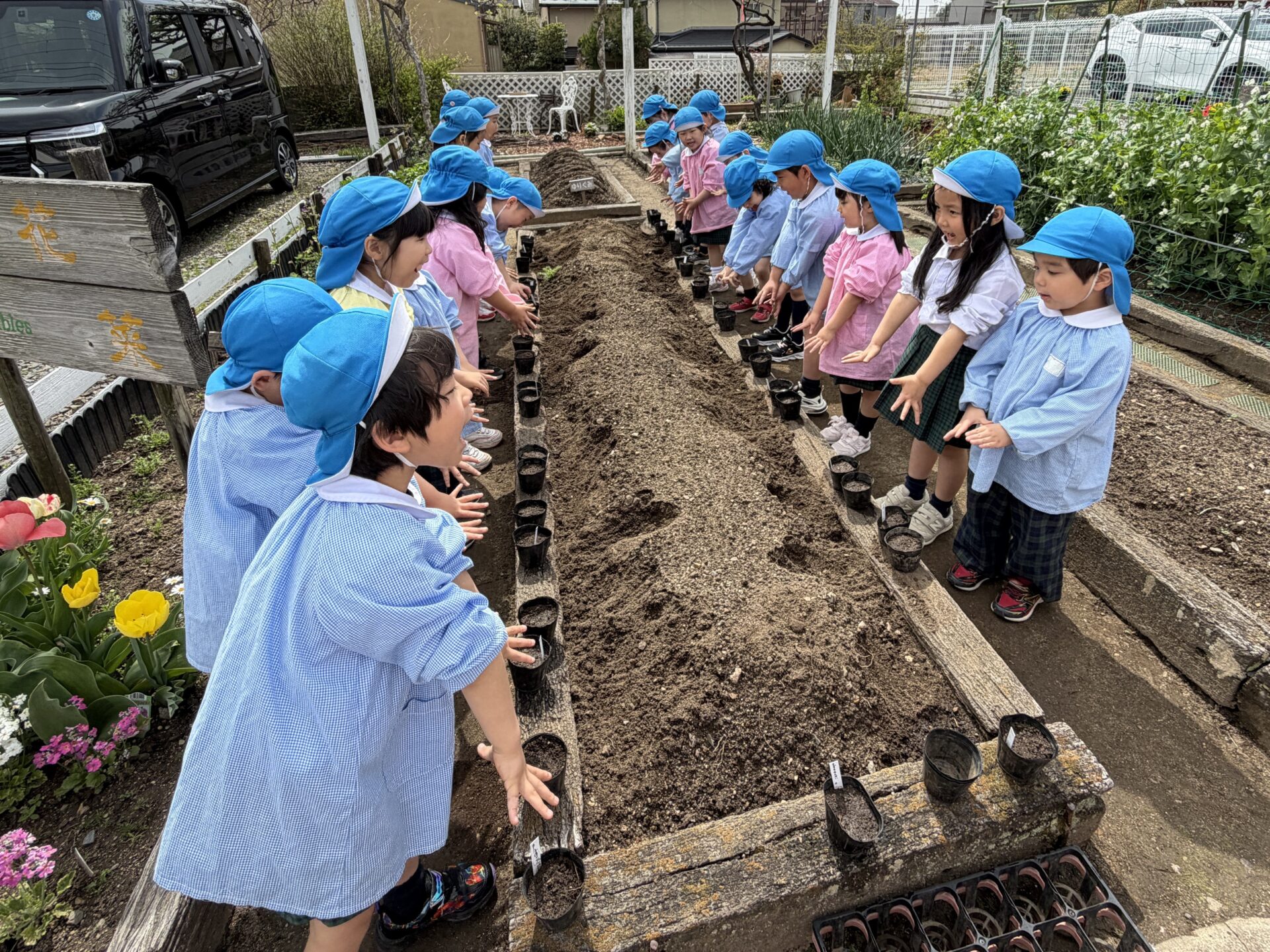 うめ(年長)組のお友だちが、マリーゴールドの種を蒔きました!種の形を見て「こんなに細い形なの!」「これがお花になるの?」と驚いていたみんな。その後、ペットボトルのジョウロで、やさしくお水をあげました。どんな色の花が咲くのかを心待ちにしながら、これから大切に育てていきます♪