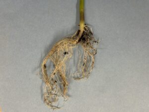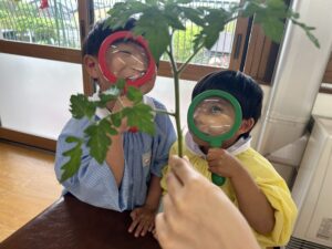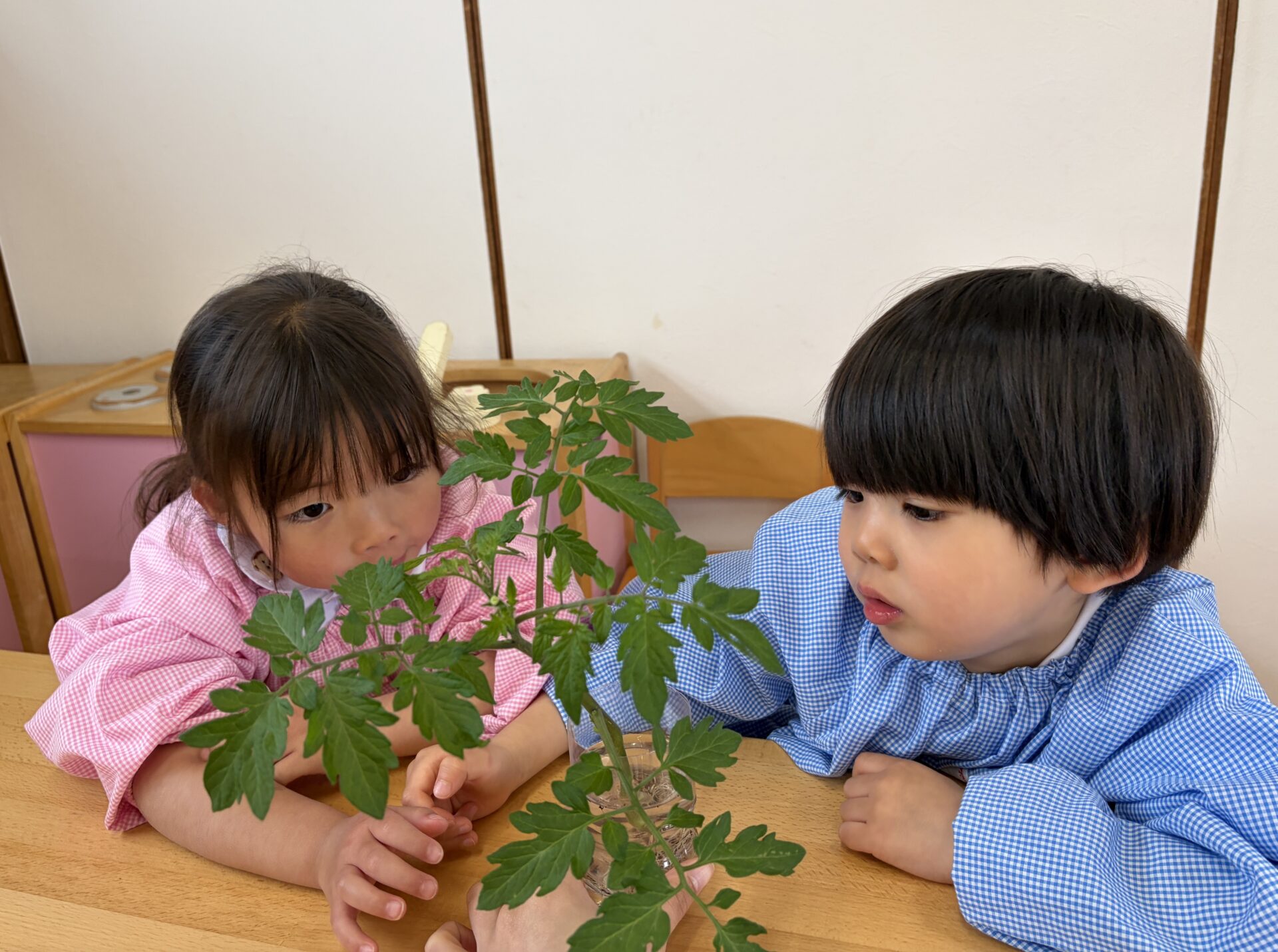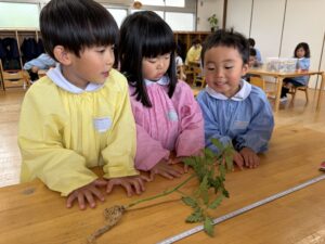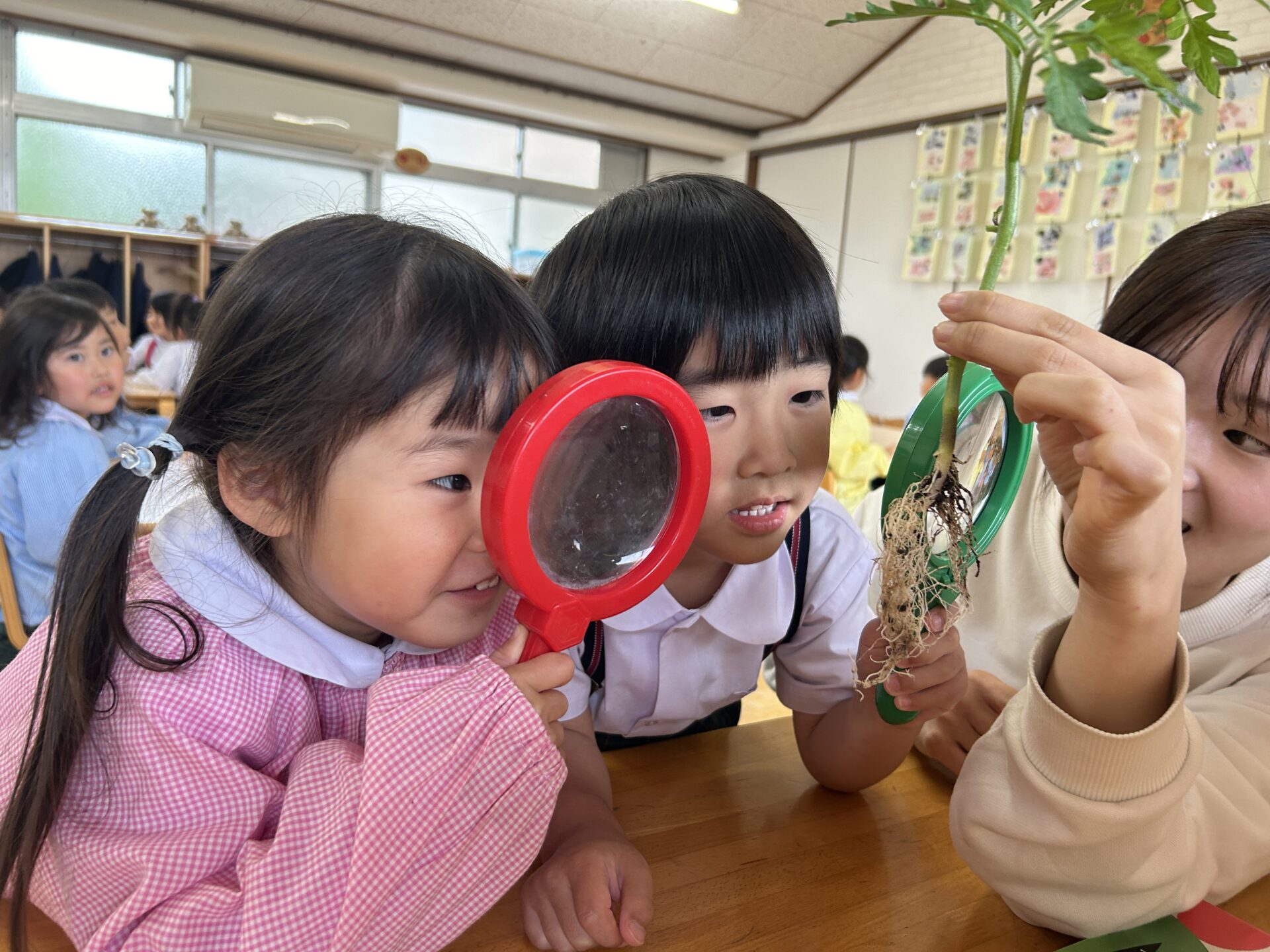※この苗は、専用の容器を使った水耕栽培(水と液体肥料で育てる方法)で育てていきます。今日は土を落とした根を水を入れたペットボトルに入れました。これから新しい根が伸びてくる様子を観察します。根がしっかり育ってきたら、専用の容器へ移していく予定です。