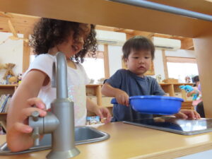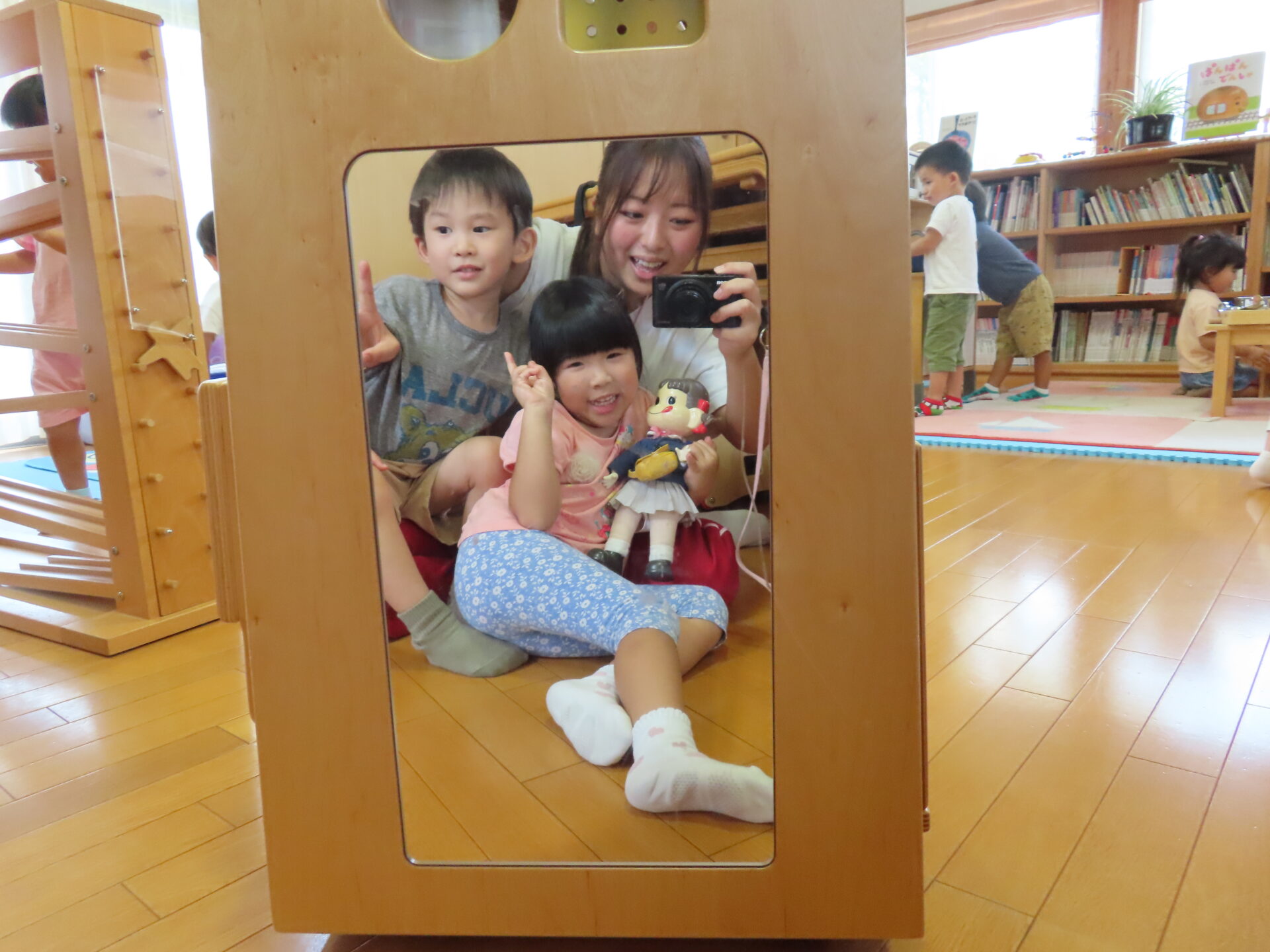 さくら(年少)組のお友だちが友遊館で遊びました。絵本を読んだりおままごとをして遊んでいたみんな☆他にもお人形や、コロコロスロープ(スロープに車や球体を転がして遊ぶおもちゃ)で遊び、「僕の車、速かったよ!」「また友遊館で遊びたい♪」と大喜びだったお友だちです!