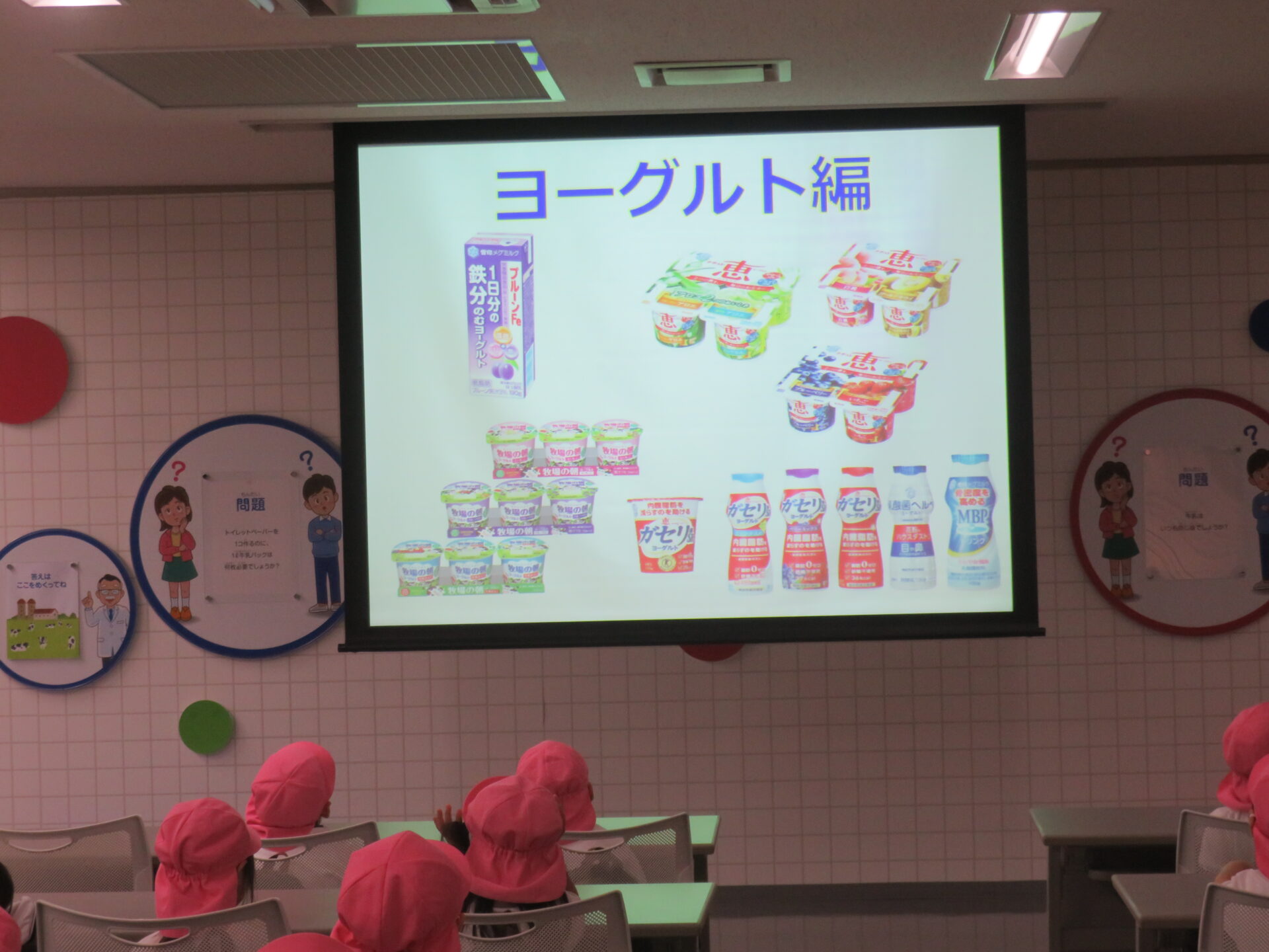 見学が終わったあとは、ヨーグルトの試食☆「さっき作ってたヨーグルトかな?」とお話ししていたみんなでした。